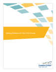 Getting Started with Your First Survey 1601 Trapelo Road Suite 329 Waltham, MA 02451 www.constantcontact.com Constant Contact, Inc. reserves the right to make any changes to the information contained in this publication without prior notice. Copyright © 1996-2010, Constant Contact, Inc. All rights reserved. Unpublished – Rights Reserved under Copyright Law of the United States. Use of a copyright notice is precautionary only and does not imply publication or disclosure. This document contains proprietary and confidential information of Constant Contact, Inc. Use, disclosure, or reproduction is prohibited without the prior express written consent of Constant Contact, Inc. For inquiries regarding reproduction or distribution of any Constant Contact material, please contact legal@constantcontact.com. Trademarks AppConnect, Brush Up, Connect. Inform. Grow., Constant Contact, the Constant Contact Logo, Constant Contact University, Connect Up, Do-It-Yourself Email Marketing, Email Marketing 101, Email Marketing Diva, Email Marketing Hints & Tips, Listen Up, Open Up, SafeSubscribe, SafeUnsubscribe, Speak Up, Survey 101, Survey Hints & Tips and The Smart Way to Reach Your Customers are trademarks, service marks, or registered trademarks or service marks of Constant Contact, Inc. in the United States and other countries. All other company and product names may be trademarks or service marks of their respective owners. Restricted Rights Legend Use, duplication, or disclosure by the Government is subject to restrictions as set forth in subdivision (c)(1)(ii) of the Rights in Technical Data and Computer Software clauses as DFARS 252.227-7013 (October 1988) and FAR 52.227-19 (c) (June 1987). ©Constant Contact, Inc. All rights reserved. 06/10 Getting Started with Your First Survey | Page 2 About this Manual Once your Constant Contact account is established, this manual will guide you through an overview to creating a survey. Although Constant Contact has many features, this manual discusses creating a survey. The Navigation Tabs Upon logging in to your Constant Contact account, you will see the navigation tabs along the top of the page. These tabs include the: • Home tab • Email Marketing tab • Online Survey tab • Contacts tab • Library tab • My Settings tab Note This manual only discusses the Online Survey tab. The Online Survey Tab The Online Survey tab is where you will create and manage your surveys and polls. Here you can create new surveys and polls, check the status, and quickly view how many responses have been received. Survey Name and Template With Online Survey, you’ll make better decisions because you’ll have feedback from more of your customers – instead of just the most vocal ones. You’ll get ideas for new products and services – along with a deeper understanding of what it takes to satisfy and keep your valued customers. Creating surveys is easy. The survey creation wizard will guide you through the following steps: 1. Name the survey 2. Select a survey template (provide a business reason for the survey and Constant Contact will suggest survey templates for you) 3. Customize the layout of the survey with your logo and fonts and colors for the background, title and questions 4. Create a greeting page 5. Create a closing page 6. Publish your survey and distribute the link The My Surveys Page In order to create surveys, navigate to the My Surveys page of your Constant Contact account. Access your My Surveys page by: 1. Clicking the Online Survey tab from the navigation bar Click the Create New Survey link under the tabs on the navigation bar to start a new survey. ©Constant Contact, Inc. All rights reserved. 06/10 Getting Started with Your First Survey | Page 3 Note You can also begin to create a new survey by clicking the Create a Survey link on the Home tab. Surveys: Name & Title In this screen, you will name your survey, and select how you want to create it. • The Survey Name is how you will identify your survey within your Constant Contact account – it is not seen by your recipients You may elect to create your survey using a template that will help you get started, based on the type of survey you are creating. You may also elect to start without the aid of a template, by starting with a blank survey. To give your survey a name: 1. Type a survey name in the Survey Name text field Select a Template Like email templates, survey templates offer a basic structure to work from when you are creating your surveys. Survey templates include text blocks with relevant text to help you get started quickly. In many cases, you will only have to change a few words within each question – customizing it for your particular needs. If you want to browse all templates, make the selection to start with a template and click the Next button to continue. If you want to start with a blank survey and add all of your own questions, make the selection and click the Next button to continue. If you need help getting started, click the link in the highlighted box. The new screen will allow you to choose a business reason for the survey, such as learning about your audience. When you select a reason and click Find Templates you will be shown a list of suggested templates. If none of the suggested templates appeal to you, you can go back and choose a different business reason, you can browse the most popular templates, or you can click the link to browse all templates. Select a survey template by following these steps: 1. Choose a Survey Template Category by clicking one of the category links 2. Choose a survey template by clicking in the radio button next to the template name 3. Click the Next button to continue General Layout Once you set your survey name and choose a template, you are ready to create your survey. This section describes the general layout of the Survey Layout page. Getting Help No matter where you are within your survey, you can quickly get help the way you need it: 