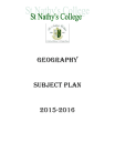 Geography Subject Plan 2015-2016 Index Mission Statement Programmes and Levels Subject Aims Subject Objectives Subject Co-ordinator – Subject Teachers Time Allocation, Options Structure and Timetabling Grouping of Students (Mixed ability, Streaming) Students Access to Subject/Level Class Organisation Textbooks and Course Materials Planning for Students with Special Needs Cross-Curricular Planning Subject Planning for a Culturally Diverse Society Literacy & Numeracy Effective Teaching Methodologies Range and Variety of Resources Provision for Health and Safety Requirements Curriculum Content Year 1 Year 2 Year 3 Year 4 Year 5 Learning Outcomes Homework Procedures Assessment Procedures Record-keeping procedures Reporting Procedures Teacher In-career Development St Nathy’s College Mission Statement St Nathy’s College was established as a centre of learning. We strive to achieve this within a fostered Christian environment which equally provides for the faith and personal development of each student. All of our school endeavours and activities are directed towards these objectives ~ Mission Statement As teachers of Geography, we aim to develop in students: An appreciation and concern for the diversity of the natural environment, and an understanding of human and physical processes. A respect for different cultures through an understanding of their development and their inter-relationships. A strong interest in their own surroundings and in the world as the home of mankind; An understand of some of the relationships between people, environments and sustainable development; A range of skills and competencies necessary to carry out geographical enquiry and to interpret geographical information. ~ Programme and Levels The following Geography programmes are available: Junior Cert to all levels Leaving Cert to all levels Transition Year Programme ~ Subject Aims To acquire an awareness and understanding of the processes involved in the physical, social and economic environment. To develop a range of practical, social, evaluation and communication skills which are of geographical and general significance. To encourage in students a sensitive awareness of peoples, places and landscapes, both in Ireland and elsewhere. To provide opportunities to foster and build upon students’ natural curiosity about their own and other people’s social and physical environments. To promote a sensitive awareness of the environment. ~ Subject Objectives Students of Geography should be able to: Acquire knowledge, an understanding of concepts and develop skills and attitudes through the geography topics dealt with in class. Acquire information and develop an understanding of: examples of physical environmental phenomena and processes relating to Ireland and elsewhere. examples of social, cultural and economic phenomena and processes relating to Ireland and elsewhere. the nature and diversity of physical and cultural landscapes in Ireland and elsewhere. Gain an understanding of the key concepts, e.g. location, spatial distribution, area association, density, pattern, region and change over time. Acquire, develop and practise skills in the following: Map interpretation Figure interpretation Photograph analysis Numerical skills and calculation Picture interpretation Figure drawing Map drawing Fieldwork Sampling Geographical Information systems Develop positive attitudes towards themselves, others and their environment. Such attitudes include: Willingness to perceive and evaluate natural and cultural phenomena from the point of view of others. Appreciation of social, cultural and environmental diversity. A responsible attitude towards the exploitation and conservation of resources. ~ Subject Co-ordinator Anne O’ Brien Subject Teachers Ronan Brett Ronan Curran Séamus Curley Niamh Fallon Anne O’Brien Teresa Owens ~ Time allocation 1st Year 2nd Year 3rd Year 4th Year 5th Year Transition Year 2 classes per week @35/40 minutes each 3 classes per week @35/40 minutes each 4 classes per week @35/40 minutes each 5/6 classes per week @35/40/45 minutes each 5/6 classes per week @35/40/45 minutes each 2 classes per week @35/40 minutes each ~ Options Structure Options Structure: Classes are generally of mixed ability - Higher Level course is pursued until the Mock examinations in Third Year - at that stage students wishing to follow Ordinary Level course can do so using past examination papers. Geography is compulsory for all students in Junior Cycle. Students are placed in mixed ability classes in First Year. All First Years follow an agreed Geography programme. A variety of teaching methods are used to cater for their needs. At the end of first year all students take a common exam in Geography. Based on the results of this exam, and exams in the other compulsory subjects, classes are formed for second year. All students in second year have the opportunity to study Geography at Higher level and are encouraged to do so. The Higher Level course is pursued until the Mock examinations in Third Year - at this stage, students wishing to follow Ordinary Level course can do so using past examination papers. Geography is one of the choice subjects at Senior Level. All Leaving Certificate students, who wish, may take Higher Level Geography. In practice a student’s decision is influenced by the advice of the teacher they had in third year, by Junior Certificate results and by the level of Geography studied for Junior Certificate. ~ Timetabling 1st Year 2nd Year 3rd Year 4th Year 5th Year 2 single class periods per week 3 single class periods per week 4 single class periods per week 3/4 single classes & 1 double class per week 3/4 single classes & 1 double class per week ~ Grouping of Students Students are allocated to option subjects according to their preference. There is no streaming in place for Geography classes, pupils are grouped on a mixed ability basis and the subject is open to boys and girls. In practice, any student at e