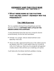 KENNEDY AND THE COLD WAR (CHAPTER – 20 / SECTION -1) What were some of the factors that helped John F. Kennedy win the presidency? The 1960 Election The two candidates Richard Nixon (Republican) and John Kennedy (Democrat) differed very little on the issues during the campaign. A main determining factor that may have swung the election toward Kennedy was the first televised debate. Kennedy was younger, relaxed, tanned and had a more appealing visual style. Nixon was older, appeared tired (because of the endless prep for the debates), had a five o’clock shadow (that was covered up with a lot of make-up, which ran as he perspired) and appeared visually unsure of him self (his eyes wondering as he spoke). A poll taken after the debates had both candidates winning. (How could that happen?) Early in the campaign Kennedy reassured the voters that being a Catholic would not interfere with his ability to serve as president. The fear existed that the Pope would direct or control the policies within our country. Another boost to the Kennedy campaign occurred when civil rights leader Martin Luther King Jr. was in prison and Kennedy called to offer him support. King thanked Mr. Kennedy, but never publicly endorsed him for president. Kennedy was able to win the election based upon the following: Voter restlessness An economic recession Kennedy’s poise during the TV debate Kennedy’s frankness about the religious issue Coming to the aid of Martin Luther King, Jr. His good looks and charisma His well-organized campaign and the Kennedy family’s wealth John Kennedy won the overall election with a margin of the popular vote of less than 119,000. The Kennedy Era At 43 years of age Kennedy became the youngest person ever elected as president of the U.S. His charming and very well educated wife and the two young children, John and Caroline, were adored by the public. Mrs. Kennedy had a great sense of what it means to preserve tradition. The White House was to become a show case in which foreign and domestic leaders were to be impressed with the surroundings. Mrs. Kennedy spent money and hours redecorating the White House, which had been neglected for several years. A New Military Policy Flexible Response was a nuclear strategy implemented by President Kennedy in 1961 to supersede the previous policy of Massive Retaliation. Flexible Response was implemented to develop several options, other than the nuclear option, for quickly dealing with enemy aggression. One thought to attacking communism was to apply economic aid rather than military. The strategy sought to target an enemy's military force first, not its civilian population. The strategy was conceived by, Secretary of Defense Robert McNamara and many view it as key to France's exiting of NATO’s integrated forces. What were the results of the Bay of Pigs invasion? Bay of Pigs The Bay of Pigs is a bay on the southern coast of the in Cuba. It is the site of the failed invasion of Cuba by CIA-trained Cuban exiles in 1961 intent on overthrowing Fidel Castro. The Kennedy Administration had banked on the Cuban population rising up to help the American fighters take down Castro, who had established a communist dictatorship in Cuba; but when they received no such help, the mission became a horrible failure. US-Cuban tensions had grown since the revolution and the overthrow of ruling President General Batista on January 1, 1959. The Eisenhower and Kennedy administrations had judged that Castro's policies including the nationalization of US assets on the island and Cuba's increasing ties with the Russia could not be tolerated, and moved to overthrow him. ______________________________________________________ US Reactions and re-evaluations The failed Bay of Pigs invasion severely embarrassed the Kennedy administration, and made Castro wary of future US intervention in Cuba. As a result of the failure, CIA Director Dulles, deputy CIA director Cabell, and Deputy Director of Operations Bissell were all forced to resign. All three were held responsible for the planning of the operation at the CIA. The CIA wrote a detailed internal report that laid blame for the failure squarely on internal incompetence. A number of grave errors by the CIA and other American analysts contributed to the debacle: The administration believed that the troops could retreat to the mountains to lead a guerrilla war if they lost in open battle. The mountains were too far to reach on foot, and the troops were deployed in swamp land, where they were easily surrounded. They believed that the involvement of the US in the incident could be denied They believed that Cubans would be grateful to be liberated from Fidel Castro and would quickly join the battle. This support failed to materialize; many hundreds of thousands of others were arrested, and some executed, prior to the landings. The CIA's near certainty that the Cuban people would rise up and join them was based on the agency's extremely weak presence on the ground in Cuba. Castro's counterintelligence, trained by Soviet Bloc specialists, had infiltrated most resistance groups. Because of this, almost all the information that came from exiles and defectors was "contaminated." CIA operative had interviewed Cubans in Havana prior to the invasion he said, "...all I could find was a lot of enthusiasm for Fidel Castro." Many military leaders almost certainly expected the invasion to fail but thought that Kennedy would send in Marines to save the exiles. Kennedy, however, did not want a full scale war and abandoned the exiles. A Washington Post article, "Soviets Knew Date of Cuba Attack", reported that the CIA had information that the Soviet Union knew the invasion was going to take place and did not inform Kennedy. Moscow actually broadcast an English-language newscast four days prior to the invasion and predicted the invasion by the CIA to take place within a week. The invasion is often criticized as making Castro even more popular, addi
