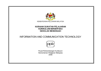 KEMENTERIAN PELAJARAN MALAYSIA HURAIAN SUKATAN PELAJARAN KURIKULUM BERSEPADU SEKOLAH MENENGAH INFORMATION AND COMMUNICATION TECHNOLOGY Pusat Perkembangan Kurikulum Kementerian Pelajaran Malaysia 2006 CONTENTS Rukun Negara v Falsafah Pendidikan Kebangsaan vi Kata Pengantar vii Introduction 1 The Curriculum Specifications 1 Recommended Approaches And Strategies For Teaching And Learning 2 Curriculum Content 3 Criteria For Schools Intending To Offer The Subject 5 Suggested Readings 6 Learning Outcomes And Specifications 1.0 Information And Communication Technology And Society 7 2.0 Computer Systems 11 3.0 Computer Networks And Communications 14 4.0 Multimedia 19 5.0 Programming 23 6.0 Information Systems 26 RUKUN NEGARA BAHAWASANYA negara kita Malaysia mendukung cita-cita untuk mencapai perpaduan yang lebih erat di kalangan seluruh masyarakatnya; memelihara satu cara hidup demokratik; mencipta masyarakat yang adil bagi kemakmuran negara yang akan dapat dinikmati bersama secara adil dan saksama; menjamin satu cara yang liberal terhadap tradisi kebudayaannya yang kaya dan berbagai-bagai corak; membina satu masyarakat progresif yang akan menggunakan sains dan teknologi moden; MAKA KAMI, rakyat Malaysia, berikrar akan menumpukan seluruh tenaga dan usaha kami untuk mencapai cita-cita tersebut berdasarkan prinsip-prinsip yang berikut: KEPERCAYAAN KEPADA TUHAN KESETIAAN KEPADA RAJA DAN NEGARA KELUHURAN PERLEMBAGAAN KEDAULATAN UNDANG-UNDANG KESOPANAN DAN KESUSILAAN v FALSAFAH PENDIDIKAN KEBANGSAAN Pendidikan di Malaysia adalah suatu usaha berterusan ke arah lebih memperkembang potensi individu secara menyeluruh dan bersepadu untuk melahirkan insan yang seimbang dan harmonis dari segi intelek, rohani, emosi, dan jasmani, berdasarkan kepercayaan dan kepatuhan kepada Tuhan. Usaha ini adalah bertujuan untuk melahirkan warganegara Malaysia yang berilmu pengetahuan, berketerampilan, berakhlak mulia, bertanggungjawab dan berkeupayaan mencapai kesejahteraan diri serta memberikan sumbangan terhadap keharmonian dan kemakmuran keluarga, masyarakat dan negara. vi KATA PENGANTAR Huraian Sukatan Pelajaran Information and Communication Technology (ICT) ialah dokumen yang memperincikan Sukatan Pelajaran yang bertujuan untuk memenuhi cita-cita murni dan semangat Falsafah Pendidikan Kebangsaan dan menyediakan pelajar menghadapi arus globalisasi serta ekonomi berasaskan pengetahuan pada abad ke-21. Dokumen ini menghurai dan mengembangkan kandungan serta menyarankan strategi pengajaran dan pembelajaran yang merangkumi pelbagai aktiviti dan penggunaan sumber. Di samping itu, huraian ini memberi hala tuju dan panduan untuk mengoptimumkan hasil pembelajaran yang dihasratkan. Guru digalakkan menggunakan kreativiti untuk memilih, menyusun dan mengolah aktiviti mengikut kesesuaian pelajar. Huraian ini diharapkan dapat membantu guru merancang dan melaksanakan pengajaran dan pembelajaran secara berkesan. Dalam melakukan aktiviti pengajaran dan pembelajaran, guru diharap akan dapat memberikan penekanan pada unsur bernilai tambah, iaitu kemahiran berfikir, kemahiran teknologi maklumat dan komunikasi, kemahiran belajar cara belajar, kajian masa depan, kecerdasan pelbagai, pembelajaran kontekstual, dan pembelajaran konstruktivisme. Di samping itu, nilai murni dan semangat patriotik dan kewarganegaraan tetap diutamakan. Semua elemen ini diharap dapat memberikan keyakinan kepada pelajar dan boleh diaplikasi dalam kehidupan harian dan dunia pekerjaan. Usaha menyempurnakan Huraian Sukatan Pelajaran ICT ini melibatkan banyak pihak iaitu pensyarah universiti, pensyarah maktab, guru, pegawai kementerian pelajaran dan tenaga pakar dari sektor swasta. Akhir kata Kementerian Pelajaran Malaysia merakamkan setinggi-tinggi penghargaan dan terima kasih kepada semua pihak yang telah memberikan sumbangan kepakaran, masa dan tenaga sehingga terhasilnya Huraian Sukatan Pelajaran ICT ini. (Dr. HAILI BIN DOLHAN) Pengarah Pusat Perkembangan Kurikulum Kementerian Pelajaran Malaysia vii INTRODUCTION Information and Communication Technology (ICT) is a powerful medium that has become increasingly important to society. The introduction of ICT as an elective subject in Malaysian secondary schools will provide a valuable training ground for students. This will help students relate their ICT learning experiences to a progressive technology-based daily life. The curriculum provides a platform for producing a technologically capable work force. This will help meet the challenges of a global economy. This subject is offered to all Form 4 and Form 5 students. It aims to provide them with the knowledge, skills and values from several designated learning areas. It will also prepare them for the Sijil Pelajaran Malaysia (SPM) examination. THE CURRICULUM SPECIFICATIONS Suggested activities are incorporated as part of the teachinglearning strategy. It should be borne in mind that teachers are also encouraged and expected to employ other effective strategies in line with the needs of the target group. What is it? The Curriculum Specifications is a document that contains detailed explanations of the basic information required within the subject curriculum. It is designed as a teaching guide to help the teacher interpret and implement the Information and Communication Technology (ICT) syllabus in the classroom. Who is it for? This document is intended for ICT teachers teaching the ICT subject at the Upper Secondary Level (Form 4 and Form 5) of the Kurikulum Bersepadu Sekolah Menengah (KBSM). What are the Learning Areas? The six learning areas are as follows: Information and Communication Technology and Society Computer Systems Computer Networks and Communications Multimedia Programming Information Systems What information does it contain? The ICT Curriculum Specifications contains the following information: The various topics and recommended duration of each topic The learning outcomes of each topic which describe the skills to be acquired by students at the end of the 