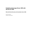 Publishing Exchange Server 2003 with ISA Server 2006 Microsoft Internet Security and Acceleration Server 2006 Microsoft Corporation Published: December, 2006 Information in this document, including URL and other Internet Web site references, is subject to change without notice. Unless otherwise noted, the companies, organizations, products, domain names, e-mail addresses, logos, people, places, and events depicted in examples herein are fictitious, and no association with any real company, organization, product, domain name, e-mail address, logo, person, place, or event is intended or should be inferred. Complying with all applicable copyright laws is the responsibility of the user. Without limiting the rights under copyright, no part of this document may be reproduced, stored in or introduced into a retrieval system, or transmitted in any form or by any means (electronic, mechanical, photocopying, recording, or otherwise), or for any purpose, without the express written permission of Microsoft Corporation. Microsoft may have patents, patent applications, trademarks, copyrights, or other intellectual property rights covering subject matter in this document. Except as expressly provided in any written license agreement from Microsoft, the furnishing of this document does not give you any license to these patents, trademarks, copyrights, or other intellectual property. © 2006. Microsoft Corporation. All rights reserved. Microsoft, Active Directory, FrontPage, Visual Studio, Windows, and Windows Server are either registered trademarks or trademarks of Microsoft Corporation in the United States and/or other countries. Contents Publishing Exchange Server 2003 with ISA Server 2006 Receiving and Sending Internet E-Mail Messages Receiving Internet E-Mail Messages Requirements to Publish an SMTP Server Before You Begin Publish a Mail Server to Receive Internet E-Mail Messages Test inbound SMTP traffic Sending Internet E-Mail Messages Confirm the SMTP Server Can Query DNS Create a Computer Object for the SMTP Server Create an Outbound SMTP Access Rule Common E-Mail Validation Checks and Sending Internet E-Mail Messages with ISA Server Pointer (PTR) Record Validation HELO/EHLO Host Name Validation Domain MX Record Validation Additional Action Client Access Publishing Exchange Web Client Access Network Topology Authentication Client certificate and Kerberos constrained delegation support LDAP authentication Exchange Configuration Requirements Confirm forms-based authentication not selected on the Exchange front-end server Enable RPC over HTTP on the front-end Exchange server Install a server certificate on the Exchange front-end server Require secure channel (SSL) communications to the Web site ISA Server Requirements Install server certificate on the ISA Server computer Request and install a server certificate from a public CA Export the server certificate to a file Import the server certificate on the ISA Server computer Update public DNS Exchange Publishing Create a server farm (optional) Create a Web listener Create an Exchange Web client access publishing rule New Exchange Publishing Rule Wizard for a single Web site New Exchange Server Publishing Rule Wizard for a server farm SSL bridging Test Exchange Publishing Rule Test Outlook Web Access Test Outlook Mobile Access Test Exchange ActiveSync Test RPC over HTTP Appendix A: Additional Publishing Features Redirecting HTTP to HTTPS Password Management Attachment Blocking Appendix B: Troubleshooting ISA Server Best Practices Analyzer Double Authentication Required after Upgrading from ISA Server 2004 Log Off when the User Leaves Site Feature Removed Windows Mobile Users Receive Error 401 Unauthorized Users Receive Access Denied Error Message Appendix C: Configuring Certificate-Based Authentication with Exchange ActiveSync through ISA Server Raising the Domain Functional Level to Windows Server 2003 Configuring Constrained Delegation and Protocol Transitioning Configuring Integrated Windows Authentication on the Exchange Front-End Servers Creating a New Web Listener Creating a New Exchange Publishing Rule 5 Publishing Exchange Server 2003 with ISA Server 2006 Microsoft® Internet Security and Acceleration (ISA) Server 2006 and Microsoft Exchange Server 2003 are designed to work closely together in your network to provide a secure messaging environment. This document explains how to publish computers running Exchange 2003 both to receive and send Internet e-mail messages and to allow clients to access their mailboxes from the Internet. Note: This document applies to Exchange Server 2003, Exchange 2000 Server, and Exchange Server version 5.5. This document does not cover the upcoming release of Exchange Server 2007. Because there are significant changes to Exchange 2007 from Exchange 2003, Exchange 2007 is discussed in a separate document. ISA Server 2006 is the security gateway that helps protect your mission-critical applications from Internet-based threats. ISA Server enables your business to do more, with secure access to Microsoft applications and data. Secure your Microsoft application infrastructure by protecting your corporate applications, services, and data across all network layers with stateful packet inspection, application-layer filtering, and comprehensive publishing tools. Streamline your network with simplified administrator and user experiences through a unified firewall and virtual private network (VPN) architecture. Safeguard your information technology environment to reduce security risks and costs, and help eliminate the effects that malicious software and attackers have on your business. Exchange 2003 is the Microsoft messaging and collaboration server software product that runs on servers. Using Exchange 2003, you can send and receive electronic mail and other forms of interactive communication through computer networks. Designed to interoperate with a software client application such as Microsoft Office Outlook®, Exchange 2