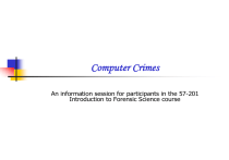 Computer Crimes An information session for participants in the 57-201 Introduction to Forensic Science course Flow of the session Historical perspective 4-14 Threats and Attacks Threats 18-21 Types of Attacks 23-30 Technology of defence 32-50 Laws and group Efforts in Canada 51 A couple of general ideas, in conclusion Note: Terminology may be explained, as the need arises. 2 Historical Perspective: Terminology 1960s and 1970s: Hacker: a positive term A Hacker: An expert, knowledgeable about programming and operating systems 1970s onwards: Hacker: a term, which progressively became more negative. A Hacker: Someone using computers without authorization . . Hacker: Someone committing crimes by using computers 3 Types of Non-authorized Users Hacker: people who access a computer resource, without authorization Crackers: a hacker who uses his or her skills to commit unlawful acts, or to deliberately create mischief Script Kiddies: a hacker who downloads the scripts and uses them to commit unlawful acts, or to deliberately create mischief, without fully understanding the scripts. Vandals Reference:http://www.e2chameleon.btinternet.co.uk/hacking.htm 4 Terminology of Hacking Eavesdropping or Snooping (also called passive wire-tapping) Active wire-tapping or man-in-the middle attack Dumpster Diving: colloquial for looking through all the easily available material before an actual intrusion into a system 5 The Global Net: A Virtual Intelligent Global System 2 Sept 1969 LEN KLEINROCK’S Lab at UC,LA 1971 15 Nodes 23 Hosts 1973 BOB METCALFE’S thesis on ETHERNET at Harvard 1974 TCP: CERF & BOB KAHN’S paper 1983 DoD Official Protocol. 1989 Hypertext & WWW at CERN by Berner Lee Then came the BROWSER’S MOSAIC NCSA and the WWW 6 Security Technologies: A little history of an ancient art: The first printed book on cryptology Johannes Trithemius, an abbot in Spanheim : One of the founders of cryptology The first printed book of cryptology: titled “Polygraphiae Libri Sex “ in German language in 1518 by Johannes Trithemius,published after the death of the writer. (The title means -Six Books of Polygraphy) 7 A little history (continued) Earlier in 1499 he had written a 3-book “Steganographia”, (meaning covered writing): which was circulated privately was published in 1606. The first two books: about cryptology. But the third book could not be understood, without understanding the encoding that he had used. 8 A little history (continued): A challenge for a cryptanalyst In the third book, which was considered to be incomplete, Trithemius explained why he had made it hard to understand: “This I did that to men of learning and men deeply engaged in magic, it might, by the Grace of God, be in some degree intelligible, while on the other hand, to the thick skinned turnip-eaters it might for all time remain a hidden secret, and be to their dull intellects a sealed book forever.” 9 “Ban, what you don’t understand.” The third book: banned in 1609, ostensibly because it explained how to employ spirits for sending secret messages. The challenge - of deciphering the book: met by three persons in 500 years 1676:Wolfgang Heidel, the archbishop of Mainz, Germany, claimed to have deciphered the third book of Trithemius. But his discovery was stated in a secret code of his own. So nobody knew whether Heidel had understood the book. 10 A little history: Deciphering the third book of Trithemius 1996:Thomas Ernst, Prof of German at La Roche College, Pittsburgh published a 200-page Germanlanguage report in a small Dutch journal, Daphnis. WIDELY KNOWN SOLUTION: spring 1998: Jim Reeds of AT & T labs solved the riddle of understanding the third book independently. He did not know of the earlier work of Ernst. Trithemius work: basically simple: Ernst took two weeks and Reeds took two days to understand it. Both Ernst and Reeds, separately, deciphered Heidel’s work and found that Heidel had been able to decipher Trithemius’ third book. 11 The first attack The Internet Worm (Nov 1988) Morris, a graduate student at CMU released a program on the internet: utilized a security hole in the mail receipt software automatically replicated itself locally and to remote machines affected a wide class of machines and effectively shut down internet for 1-2 days. Cost estimate to fix: $5 million 12 The first conviction Mitnick and Shimomura (Christmas 1994) Used SYN flooding and TCP Hijacking to connect to Shimomura’s home machine. Stole copies of 1000’s of files including specialized computer security software; modified log files to remove signs of entry. Shimomura found out about the entry and informed FBI. 13 Common attacks on banks through Internet Losses due to attacks: "The major banks don't want to divulge the amount of losses. But just to give one example, a major Australian bank has put several million dollars in reserve since August 2003 to cover damages due to Internet frauds.“– Dave Jevans, eWeek, Dec 2003 14 Causes of Security Problems on Internet Internet Technology: was developed based on trust Security features: added, as different types of attacks are mounted. Users: bother about ease of use and not about security 15 Security Threats RFC 1244 identifies three distinct types of security threats associated with network connectivity: Unauthorized access A break-in by an unauthorized person. Break-ins may be an embarrassment that undermine the confidence that others have in the organization. Moreover unauthorized access one of the other threats:-- disclosure of information or --denial of service. 16 Classification of Security Threats Reference: RFC 1244 Disclosure of information disclosure of valuable or sensitive information to people, who should not have access to the information. Denial of service or Degradation of service Any problem that makes it difficult or impossible for the system to continue to perform productive work. Do not connect to Internet: a system with highly classified information, o