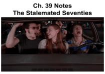 Ch. 39 Notes The Stalemated Seventies Election of 1968 A. Nixon and his VP nominee- Spiro Agnew - win. B. Humphrey runs as Democrat. C. Wallace as American Independent southern white racist guy! (last time one of these runs!!!) Election of 1972 A. Nixon and Agnew win the 1972 Presidential election by a landslide! – (Was it corrupted???) B. Democrat- Senator George McGovern from South Dakota (Notice Nixon only lost 1 state!) Changes in the Supreme Court Warren Burger/Burger Court 1. Shifts from liberal court (Earl Warren, Civil Rights, etc.) to a more conservative court 2. Nixon nominated Warren Burger as chief justice after Earl Warren 3. Nixon placed three other conservatives on the bench also Stagflation Stagflation: combination of rising unemployment and inflation (both bad) 2. Large problems with federal deficit, costs of Johnson’s War on Poverty and Vietnam 3. August 1971- New Economic Policy/ “NIXONOMICS”- freeze on prices, rent, and wages. New Federalism Republican attitude of reducing federal government's role in the economy, and a return of power to the states. OPEC 1. Organization of Petroleum Exporting Countries- countries that got together to “monopolize oil prices” 2. 12 countries made up of Algeria, Angola, Ecuador, Iran, Iraq, Kuwait, Libya, Nigeria, Qatar, Saudi Arabia, the United Arab Emirates, and Venezuela. 3. Announces a price hike-1973: Oil goes from $3.00 a barrel in the summer to $11.65 a barrel by December (today it is $101.00 a barrel) 1. 1970s- Rising oil costs became a major cause of inflation and consumer worry. 2. US has become increasingly dependent on foreign oil since WWII. Energy Crisis 3. Oct, 1973- Arab nations cut off oil shipments to the US as punishment for US support of Israel in the new Arab-Israeli war. 4. Price of petroleum shot ups 400%, created shortages in oil, gas, heating, etc. – And we thought Katrina was bad? H Environmental Protection 1. EPA- federal group established in 1970 in response to an oil spill off of the coast of Santa Barbara, Ca. The FIRST Earth Day celebration and continued environmental legislation (air, water, recycling, conservation) 2. Clean Air Act- set air-quality standards and tough emissions guidelines for automakers (1970) 3. Water Quality Act- required oil companies to pay part of clean up costs of oil spills (1972) 4. Endangered Species Act- protect the wildlife of extinction (1972) Henry Kissinger 1. Nixon’s Secretary of State 2. Had advised IKE, JFK, and LBJ 3. Later will serve as Reagan’s foreign-affairs advisor 4. Nobel Peace Prize winner of 1973 Realpoliticknational interest, rather than ideals such as democracy and human rights- should guide US foreign policy. 5. Shared Nixon’s idea of Nixon-Kissinger Approach 1. The chief goal of their foreign policy was to establish a balance of power among the world’s five major powers. a. United States b. China c. Japan d. Soviet Union e. Western Europe. (France and Great Britain) Nixon’s China Visit- Feb. ‘72 1. Nixon is perhaps best known for his China visit. 2. Improved relations with China by lifting trade and travel restrictions 3. The 2 nations worked together to promote peace in the Pacific 4. Nixon proposed the eventual withdrawal of US troops from Taiwan to promote a new policy he was planning regarding Soviet Union. The Moscow Summit-May ‘72 Strategic Arms Limitation Talks (SALT)US and SU sign a treaty limiting the number of continental nuclear weapons- those capable of traveling long distances. 2. These talks actually began in ’69. 3. This did not end the Arms Race, but it was a small step toward reducing the nuclear threat 4. SU enters into détente- a lessening of military and diplomatic tensions between the countries Cambodia- ’69-70 1. Nixon plans to send troops through neutral Cambodia to cut off supply lines of North Vietnamese troops. (because of the Ho Chi Minh trail… remember?) 2. Nixon orders widespread bombing of Cambodia- he and Kissinger keep this a big secret from American people. 3. Nixon feared international uproar over the invasion. 4. A revolt overthrows Cambodian leader in March ’70- Nixon’s attitude changes the new leader was proAmerican, Nixon makes his strategy public. 5. Because 6. 80,000 US troops enter Cambodia and the North Vietnamese enter too. Cambodia is now under attack…. My Lai Massacre (1968) An attack carried out in March 1968 by the United States Army on the hamlet of My Lai during the Vietnam War. As many as 500 civilians were killed during the attack. US soldiers were told that they were to attack the enemy settlement and to be prepared to kill anyone they encountered. As it turned out, only women, children, and elderly men going about their normal routines were in the hamlet when a platoon entered the area and began herding them into groups to be executed. – Many villagers had also been raped and mutilated. Throughout the attack there had been no hostile fire from the village. As a result of My Lai, U.S. soldiers are now routinely trained to know that orders to kill civilians can and should be disobeyed NO WONDER AMERICANS WERE PROTESTING the WAR… Anti-War Protest Increase Pentagon Papers: 1971-New York Times (against the US governments wishes) begins to publish a collection of secret government documents relating to the war. Causes havoc in the US!!... More protesting… the truth was out Vietnam Protests Kent State, Ohio • May 4, 1970 • 4 shot dead, 11 students wounded- in a protest rally Jackson State, MS May 10, 1970 2 dead, 12 wounded Vietnamization 1. War strategy of turning over fighting to South Vietnam and gradually pulling out US troops. 2. Nixon thought this would bring “peace with honor”. He HOPED it would produce a stable anti-communist South Vietnam. 3. When Nixon took office in ’69, troop numbers were 540,000. By ’72 it had dropped to 24,200. War Powers Act 1. In 1973, seeking to prevent another “Vietnam”, Congress passes this legislation. 2. This act