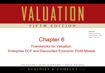 Instructors: Please do not post raw PowerPoint files on public Chapter 6 website. Thank you! Frameworks for Valuation: Enterprise DCF and Discounted Economic Profit Models Using DCF to Value Companies • There are five well-known frameworks for valuing a company using discounted flows, the most common being enterprise discounted cash flow (DCF). • In theory, each framework will generate the same value. In practice, the ease of implementation and the interpretation of results varies across frameworks. • In this presentation, we examine how to value a company using enterprise DCF and discounted economic profit. Frameworks for Valuation Model Enterprise discounted cash flow Measure Discount factor Assessment Free cash flow Weighted average Works best for projects, business units, and companies cost of capital that manage their capital structure to a target level. Discounted economic profit Economic profit Adjusted present value Free cash flow Unlevered cost of equity Highlights changing capital structure more easily than WACC-based models. Capital cash flow Capital cash flow Unlevered cost of equity Compresses free cash flow and the interest tax shield in one number, making it difficult to compare operating performance among companies and over time. Equity cash flow Cash flow to equity Levered cost of equity Difficult to implement correctly because capital structure is embedded within the cash flow. Best used when valuing financial institutions. Weighted average Explicitly highlights when a company creates value. cost of capital 2 Valuing the Enterprise versus Financial Claims • To value a company, you can either value the cash flows generated by the company’s economic assets or value each financial claim separately (debt equity, other financial claims, etc.). Enterprise Valuation of a Single-Business Company $ million 427.5 After-tax cash flow to debt holders 427.5 Debt value 1 110 Free cash flow To value operations, discount free cash flow by the weighted average cost of capital. 70 20 180 140 110 100 65 200.0 15 120 Cash flow to equity holders Equity value To value equity directly, discount equity cash flow by the cost of equity. 227.5 90 Discount free cash flow by the weighted average cost of capital. 70 85 55 70 Enterprise value 1 Alternatively, value operations and subtract the value of debt. Debt value equals discounted after-tax cash flow to debt holders plus the present value of interest tax shield . 3 Defining Enterprise Value versus Equity Value A company’s equity value can be computed indirectly by calculating enterprise value first and then subtracting any nonequity claims, such as debt. Enterprise value equals the value of operations (core businesses) and nonoperating assets, such as excess cash. Enterprise Valuation of a Multibusiness Company $ million 560 225 30 520 40 200 360 125 200 Unit A Unit B Unit C Corporate center Nonoperating Enterprise Value of operations assets value Value of debt Equity value Value of operating units 4 The Valuation Process Using Enterprise DCF Valuation is an iterative process… 6. Calculate and Interpret Results Once the model is complete, examine valuation results to ensure your findings are technically correct, your assumptions are realistic, and your interpretations are plausible. 1. Analyze Historical Performance By thoroughly analyzing the past, we can document whether the company has created value, whether it has grown, and how it compares with its competitors. 5. Enterprise Value to Equity Value To convert enterprise value into equity value, subtract any nonequity claims, such as debt, unfunded retirement liabilities, capitalized operating leases, and outstanding employee options. 4. Compute the Cost of Capital To value the enterprise, free cash flow is discounted by the weighted average cost of capital. The cost of capital is the blended rate of return for all sources of capital, specifically debt and equity. 2. Forecast Financials and Cash Flows Project financials over the short and medium term. Short-term forecasts should be consistent with announced operating plans. Medium-term forecasts should focus on operating drivers, such as margins, and on capital turnover. 3. Estimate a Continuing Value To forecast cash flows in the long-term future, use a perpetuity that focuses on the company’s key value drivers, specifically ROIC and growth. 5 1. Analyze Historical Performance: Analyzing ROIC Analyze Historical Performance • Before projecting future cash flow, examine the company’s historical performance. A good analysis focuses on the key drivers of value: return on invested capital (ROIC) and growth. ROIC measures a company’s ability to create value. • Both Home Depot and Lowe’s have struggled to maintain ROIC in recent years. Home Depot no longer enjoys a performance advantage over Lowe’s. Home Depot and Lowe’s Return on Invested Capital percent 20 15 Home Depot 10 Lowe's 5 0 2000 2001 2002 2003 2004 2005 2006 2007 2008 1 ROIC measured with goodwill and acquired intangibles. Goodwill and acquired intangibles do not meaningfully affect ROIC for either company. How do we compute ROIC? 6 Analyze Historical Performance: Computing ROIC Home Depot and Lowe's: Historical ROIC Analysis NOPLAT After-tax operating profit equals revenues minus operating costs, less any taxes that would have been paid if the firm held only core assets and was financed only with equity. Invested Capital Invested capital equals the operating assets required for core business activities (such as inventory and PP&E) less any financing provided by customers, employees, and suppliers (such as accounts payable). $ million Home Depot Lowe's 2006 90,837 (61,054) (18,348) (1,645) 441 10,231 2007 77,349 (51,352) (17,053) (1,693) 536 7,787 2008 71,288 (47,298) (17,846) (1,785) 486 4,845 Operating cash taxes NOPLAT (3,986) 6,245 (3,331) 4,456 (1,811) 3,033 (2,071) 3,266 (1,973) 2,901 (1,496) 2,489 Invested Capital Operating working capital Net propert