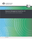 Resource Management Guide No. 411 Grants, Procurements and Other Financial Arrangements JULY 2014 © Commonwealth of Australia 2014 ISBN: 978-1-922096-57-9 (Online) With the exception of the Commonwealth Coat of Arms and where otherwise noted, all material presented in this document is provided under a Creative Commons Attribution 3.0 Australia (http://creativecommons.org/licenses/by/3.0/au) licence. The details of the relevant licence conditions are available on the Creative Commons website (accessible using the links provided) as is the full legal code for the CC BY 3 AU licence. Use of the Coat of Arms The terms under which the Coat of Arms can be used are detailed on the following website: www.itsanhonour.gov.au/coat-arms. Contact us Questions or comments about this guide should be directed to: Public Management Reform Agenda Department of Finance John Gorton Building King Edward Terrace Parkes ACT 2600 Email: pmra@finance.gov.au Internet: www.pmra.finance.gov.au This guide contains material that has been prepared to assist Commonwealth entities and companies to apply the principles and requirements of the Public Governance, Performance and Accountability Act 2013 and associated rules, and any applicable policies. In this guide the: mandatory principles or requirements are set out as things entities and officials ‘must’ do; and actions, or practices, that entities and officials are expected to take into account to give effect to those principles and/or requirements are set out as things entities and officials ‘should consider’ doing. Contents AUDIENCE KEY POINTS RELEVANT RESOURCES FOREWORD KEY CONCEPTS PART 1 – GRANTS 4 4 4 5 6 7 GRANTS 7 ARRANGEMENTS NOT CONSIDERED TO BE GRANTS 8 PART 2 – PROCUREMENTS AND OTHER FINANCIAL ARRANGEMENTS 9 PROCUREMENTS 9 ARRANGEMENTS NOT CONSIDERED TO BE PROCUREMENTS 9 ACT OF GRACE PAYMENTS 9 COMPENSATION PAYMENTS 9 A PAYMENT TO A PERSON OF A BENEFIT OR ENTITLEMENT ESTABLISHED BY LEGISLATION 10 TAX CONCESSIONS OR OFFSETS 10 INVESTMENTS 10 LOANS 10 GIFTS OF RELEVANT PROPERTY 10 ATTACHMENT A ATTACHMENT B FINANCIAL ARRANGEMENTS MATRIX DECISION TREE FOR FINANCIAL ARRANGEMENTS 11 14 Resource Management Guide No. 411 Grants, procurements and other financial arrangements Audience This Guide applies to Accountable authorities and officials of non-corporate Commonwealth entities responsible for financial arrangements. Key points The Commonwealth Grants Rules and Guidelines (CGRGs) are issued by the Finance Minister under section 105C of the Public Governance, Performance and Accountability Act 2013 (PGPA Act). This guide: provides guidance to non-corporate Commonwealth entities on how to distinguish between grants, procurements and other financial arrangements reflects changes to the definition of a ‘grant’ replaces Finance Circular 2013-01: Grants, Procurements and other Financial Arrangements Resources This guide is available on the Department of Finance website at http://www.finance.gov.au/financial-framework/financial-management-policyguidance/grants/additional-guidance.html. Commonwealth Grants Rules and Guidelines Public Governance, Performance and Accountability Act 2013 Financial Framework (Supplementary Powers) Act 1997 Financial Framework (Supplementary Powers) Regulations 1997 Resource Management Guide No. 400: Approving Commitments of Relevant Money Resource Management Guide No. 412: Australian Government Grants - Briefing and Reporting Q&As Contact information: grants@finance.gov.au Resource Management Guide No. 411 Grants, Procurements and Other Financial Arrangements | 4 Foreword This guide provides guidance for officials on how to distinguish between grants, procurements and other common types of financial arrangements. It reflects the resource management framework under the PGPA Act. This guide provides guidance on common forms of financial arrangements available to officials to achieve Australian Government policy objectives. To facilitate a particular outcome, officials may decide to use a specific financial arrangement or a combination of financial arrangements. In determining which financial arrangement to use, officials should focus on the substantive purpose and characteristics of the financial arrangement and document the reasons for using that particular financial arrangement. It is essential that officials apply the relevant framework (i.e. policy, processes and legal requirements) that establish the requirements for different types of financial arrangements. It is also important for officials to confirm that existing arrangements are properly characterised, particularly following recent updates to the Commonwealth Procurement Rules and Commonwealth Grants Rules and Guidelines. Attached are two tools for officials: Attachment A provides a table summarising the information contained in this circular; Attachment B contains a decision tree to assist officials to determine which type of financial arrangement they are using. For questions relating to this Resource Management Guide, please contact the Grants Policy Team at grants@finance.gov.au. Kerry Markoulli Assistant Secretary Resource Management Branch Governance and Resource Management July 2014 Resource Management Guide No. 411 Grants, Procurements and Other Financial Arrangements | 5 Key Concepts authority means the legal authority (whether expressed or implied) to exercise a power or function that can be given directly through legislation (e.g. accountable authorities’ powers under section 23 of the PGPA Act, section 32B of the Financial Framework (Supplementary Powers) Act 1997 or other specific legislation) or through a delegation or authorisation. Commonwealth Grants Rules and Guidelines (CGRGs) establish the overarching Commonwealth grants policy framework within which entities develop their own specific grants administration practices. They also articulate the expectations for all non-corporate Commonwealth entities in relation to grants administration. Commonw
