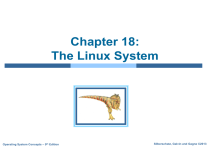 Chapter 18: The Linux System Operating System Concepts – 9th Edition Silberschatz, Galvin and Gagne ©2013 Chapter 18: The Linux System Linux History Design Principles Kernel Modules Process Management Scheduling Memory Management File Systems Input and Output Interprocess Communication Network Structure Security Operating System Concepts – 9th Edition 18.2 Silberschatz, Galvin and Gagne ©2013 Objectives To explore the history of the UNIX operating system from which Linux is derived and the principles upon which Linux’s design is based To examine the Linux process model and illustrate how Linux schedules processes and provides interprocess communication To look at memory management in Linux To explore how Linux implements file systems and manages I/O devices Operating System Concepts – 9th Edition 18.3 Silberschatz, Galvin and Gagne ©2013 History Linux is a modern, free operating system based on UNIX standards First developed as a small but self-contained kernel in 1991 by Linus Torvalds, with the major design goal of UNIX compatibility, released as open source Its history has been one of collaboration by many users from all around the world, corresponding almost exclusively over the Internet It has been designed to run efficiently and reliably on common PC hardware, but also runs on a variety of other platforms The core Linux operating system kernel is entirely original, but it can run much existing free UNIX software, resulting in an entire UNIX-compatible operating system free from proprietary code Linux system has many, varying Linux distributions including the kernel, applications, and management tools Operating System Concepts – 9th Edition 18.4 Silberschatz, Galvin and Gagne ©2013 The Linux Kernel Version 0.01 (May 1991) had no networking, ran only on 80386- compatible Intel processors and on PC hardware, had extremely limited device-drive support, and supported only the Minix file system Linux 1.0 (March 1994) included these new features: Support for UNIX’s standard TCP/IP networking protocols BSD-compatible socket interface for networking programming Device-driver support for running IP over an Ethernet Enhanced file system Support for a range of SCSI controllers for high-performance disk access Extra hardware support Version 1.2 (March 1995) was the final PC-only Linux kernel Kernels with odd version numbers are development kernels, those with even numbers are production kernels Operating System Concepts – 9th Edition 18.5 Silberschatz, Galvin and Gagne ©2013 Linux 2.0 Released in June 1996, 2.0 added two major new capabilities: Support for multiple architectures, including a fully 64-bit native Alpha port Support for multiprocessor architectures Other new features included: Improved memory-management code Improved TCP/IP performance Support for internal kernel threads, for handling dependencies between loadable modules, and for automatic loading of modules on demand Standardized configuration interface Available for Motorola 68000-series processors, Sun Sparc systems, and for PC and PowerMac systems 2.4 and 2.6 increased SMP support, added journaling file system, preemptive kernel, 64-bit memory support 3.0 released in 2011, 20th anniversary of Linux, improved virtualization support, new page write-back facility, improved memory management, new Completely Fair Scheduler Operating System Concepts – 9th Edition 18.6 Silberschatz, Galvin and Gagne ©2013 The Linux System Linux uses many tools developed as part of Berkeley’s BSD operating system, MIT’s X Window System, and the Free Software Foundation's GNU project The main system libraries were started by the GNU project, with improvements provided by the Linux community Linux networking-administration tools were derived from 4.3BSD code; recent BSD derivatives such as Free BSD have borrowed code from Linux in return The Linux system is maintained by a loose network of developers collaborating over the Internet, with a small number of public ftp sites acting as de facto standard repositories File System Hierarchy Standard document maintained by the Linux community to ensure compatibility across the various system components Specifies overall layout of a standard Linux file system, determines under which directory names configuration files, libraries, system binaries, and run-time data files should be stored Operating System Concepts – 9th Edition 18.7 Silberschatz, Galvin and Gagne ©2013 Linux Distributions Standard, precompiled sets of packages, or distributions, include the basic Linux system, system installation and management utilities, and ready-to-install packages of common UNIX tools The first distributions managed these packages by simply providing a means of unpacking all the files into the appropriate places; modern distributions include advanced package management Early distributions included SLS and Slackware Red Hat and Debian are popular distributions from commercial and noncommercial sources, respectively, others include Canonical and SuSE The RPM Package file format permits compatibility among the various Linux distributions Operating System Concepts – 9th Edition 18.8 Silberschatz, Galvin and Gagne ©2013 Linux Licensing The Linux kernel is distributed under the GNU General Public License (GPL), the terms of which are set out by the Free Software Foundation Not public domain, in that not all rights are waived Anyone using Linux, or creating their own derivative of Linux, may not make the derived product proprietary; software released under the GPL may not be redistributed as a binaryonly product Can sell distributions, but must offer the source code too Operating System Concepts – 9th Edition 18.9 Silberschatz, Galvin and Gagne ©2013 Design Principles Linux is a multiuser, multitasking system with a full set of UNIX-compatible tools Its file system adheres to traditional UNIX semantics, and it fully implements the standard UNIX networking model Main design goals are speed, efficien
