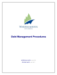 Debt Management Procedures APPROVAL DATE: July 2014 REVIEW DATE: July 2017 DEBT MANAGEMENT PROCEDURES DOCUMENT CONTROL Document Title: Debt Management Procedures Procedure Type: Operational Responsible Branch: Financial Services Responsible Officer: Manager Financial Services Document Status: Draft Approved By: TBA Adopted Date: July 2014 Review Date: July 2017 These Procedures should be read in conjunction with the Warrnambool City Council Debt Management Policy. Page 2 of 22 Policy Type: Debt Management Procedures; Responsible Branch: Finance; Approved Date: July 2014; Review Date: July 2017. DEBT MANAGEMENT PROCEDURES TABLE OF CONTENTS 1. INTRODUCTION ................................................................................................................................ 4 1.1. Purpose .......................................................................................................................................... 4 1.2. Scope.............................................................................................................................................. 4 1.3. Definitions...................................................................................................................................... 5 1.4. References ..................................................................................................................................... 6 2. PROCEDURE ..................................................................................................................................... 6 2.1. Rate Debtor Procedures............................................................................................................... 7 2.1.1. Issuing of Rates Notices ............................................................................................................................... 7 2.1.2. Collection of Rate Debts ............................................................................................................................... 7 2.1.3. Interest on Outstanding Rates and Charges ........................................................................................ 8 2.1.4. Authority to Alter Rate Payment Arrangements .................................................................................. 8 2.2. Non-Rate Debtor Procedures ...................................................................................................... 8 2.2.1. Reference Checks........................................................................................................................................... 9 2.2.2. Issuing of Debtor Invoices.......................................................................................................................... 10 2.2.3. Standard Payment Terms .......................................................................................................................... 13 2.2.4. Collection of Debt .......................................................................................................................................... 13 2.2.5. Debt Collection & Legal Action ................................................................................................................ 13 2.2.6. Interest on Outstanding Monies ............................................................................................................... 16 2.2.7. Freeze Credit................................................................................................................................................... 16 2.2.8. Recognition of Debts for Provision or Write-Off ................................................................................ 16 2.2.9. Approval and Conditions for Writing-off Bad Debts ......................................................................... 16 2.2.10. Receipting procedures ................................................................................................................................ 17 2.2.11. Refunds and credit notes ........................................................................................................................... 17 2.2.13. Reconciliation of Accounts Receivable subsidiary ledgers .......................................................... 18 2.2.14. Reporting to Council ..................................................................................................................................... 18 2.3. Supporting Documentation ....................................................................................................... 18 3. GOVERNANCE ................................................................................................................................ 18 3.1. Owner ........................................................................................................................................... 18 3.2. Review .......................................................................................................................................... 18 3.3. Compliance Responsibility ........................................................................................................ 19 3.4. Charter of Human Rights Compliance ..................................................................................... 19 4. APPENDICES................................................................................................................................... 20 4.1. Appendix A .................................................................................................................................. 20 4.2. Appendix B .................................................................................................................................. 21 4.3. Appendix C .................................................................................................................................. 22 Page 3 of 22 Policy Type: Debt Management Procedures; Responsible Branch: Finance; Approved D