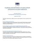 FLORIDA DEPARTMENT OF EDUCATION DIVISION OF BLIND SERVICES Innovative Projects Benefiting Blind and Visually-Impaired Floridians Application Guide The Division of Blind Services (DBS) Innovative Projects Application Guide is organized into four sections. Section I: Background and Summary This section provides an overview of the purpose of the Innovative Projects Program, the target population(s), eligible applicants, funding amounts, application dates, required supplemental materials and contact information. Section II: Application Acceptance, Review, Funding Methods and Accountability This section details application acceptance conditions and review processes. Also included is information on funding methods, conditions and distribution. Finally, fiscal and other accountability requirements are addressed. Section III: Project Support Application Form and Instructions This section includes instructions on completing the project support application form, which is comprised of background information, eligibility requirements, supplemental materials checklists, narrative components, and scoring criteria. Section IV: General Assurances This section includes general assurances and additional terms and conditions for participation in the Innovative Project Program. Applicants must agree to these general assurances by providing a signed copy of the certification page at application submission. Carefully read this entire guide. Submitted applications must be complete and contain all information necessary for evaluation. Applications failing to meet specified requirements or the application deadline will not be considered for project support. Additional information may be requested from the applicant in order to adequately evaluate the project request. Section I: Background and Summary About the DBS Innovative Projects Program As an integral part of accomplishing its mission, the purpose of the Division of Blind Services (DBS) Innovative Projects Program is to make possible and support projects and programs that benefit Floridians who are blind or visually impaired, as well as to fund projects related to system changes, research and development. The Florida Legislature (Chapter 413.011(3)(v), F.S.), authorizes DBS to: “Receive moneys or properties by gift or bequest from any person, firm, corporation, or organization for any of the purposes herein set out, but without authority to bind the state to any expenditure or policy except such as may be specifically authorized by law. All such moneys or properties so received by gift or bequest as herein authorized may be disbursed and expended by the Division upon its own warrant for any of the purposes herein set forth, and such moneys or properties shall not constitute or be considered a part of any legislative appropriation made by the state for the purpose of carrying out the provisions of this law.” Mission To ensure blind and visually impaired Floridians have the tools, support and opportunity to achieve success. Innovative Projects Program priorities and target populations The DBS Innovative Projects Program provides funds to Florida not-for-profit agencies for a wide variety of projects benefiting Floridians with bilateral visual impairments, who are eligible for services through the Division of Blind Services. It is expected that proposed projects will benefit individuals who are eligible for DBS services. Project support priorities may be established based on the outcomes of formal and informal needs assessments, strategic priorities and consumer needs. DBS Innovative Projects Program 325 W. Gaines St., Suite 1114; Tallahassee, FL 32399 http://www.dbs.fldoe.org Application Guide 2016 Page 2 The program aims primarily to support projects that are innovative in nature, that explore new approaches and perspectives and/or projects that implement recognized best practices not previously employed by organizations requesting support. Who is eligible to apply for project support? Not-for-profit organizations currently qualified as tax exempt under Internal Revenue Code Section 501(c)(3) and those public non-profit organizations that demonstrate a substantial interest in serving Floridians who are blind or visually impaired, are eligible to apply. How much money is awarded each year? For approved projects, the Division may support an aggregate amount of up to $300,000.00 per year, but typically will not support more than $150,000.00 per year. Actual amounts will be contingent upon fund availability. The amount of the project support provided to each program is relative to the scale, scope and complexity of the proposed project. Some organizations may only receive a portion of the requested funds. Individual organizational support approvals will not typically exceed $25,000. What proposals are NOT eligible for funding? The Innovative Projects Program Review Committee will not consider for funding: 1. Any proposal not submitted in an accessible format 2. Any proposal submitted after the deadline 3. Any proposal for a for-profit small business startup or continuation 4. Any proposal requesting support for a specific individual 5. Any proposal that does not include other funders or plans to gain other funders for support 6. Any proposal which includes requests for fellowships or scholarships 7. Any proposal that includes a request for the purchase of real estate 8. Any proposal that does not address the needs of Floridians who are blind or visually impaired What items are ineligible for funding? 1. 2. 3. 4. 5. 6. 7. Pre-award costs Travel expenses Purchase of facilities of vehicles (e.g. buildings, buses, vans, cars) Land acquisition Furniture Tuition Capital Improvements and permanent renovations (e.g., playgrounds, buildings, fences, wiring) 8. Dues to organizations, federations or societies for personal benefit 9. Costs for items/services already covered by indirect costs allocation This is not an all-inclusive list of unallowable items. Awardees are