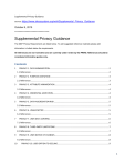 Supplemental-Privacy-Guidance source: https://www.idecosystem.org/wiki/Supplemental_Privacy_Guidance October 6, 2015 ************************************ Supplemental Privacy Guidance The IDEF Privacy Requirements are listed below. To add suggested reference materials please add information in bullets below the requirements. All references are non-normative and are currently under review by the PRWG. References should be considered informative guides only. Contents 1 PRIVACY‐1. DATA MINIMIZATION ......................................................................................................... 2 1.1 References .......................................................................................................................................... 2 2 PRIVACY‐2. PURPOSE LIMITATION ........................................................................................................ 3 2.1 References .......................................................................................................................................... 3 3 PRIVACY‐3. ATTRIBUTE MINIMIZATION ................................................................................................ 4 3.1 References .......................................................................................................................................... 4 4 PRIVACY‐4. CREDENTIAL LIMITATION ................................................................................................... 4 4.1 References .......................................................................................................................................... 4 5 PRIVACY‐5. DATA AGGREGATION RISK ................................................................................................. 5 5.1 References .......................................................................................................................................... 5 6 PRIVACY‐6. USAGE NOTICE ................................................................................................................... 5 6.1 References .......................................................................................................................................... 5 7 PRIVACY‐7. USER DATA CONTROL ........................................................................................................ 6 7.1 References .......................................................................................................................................... 6 8 PRIVACY‐8. THIRD‐PARTY LIMITATIONS ............................................................................................... 7 8.1 References .......................................................................................................................................... 7 9 PRIVACY‐9. USER NOTICE OF CHANGES ................................................................................................ 8 9.1 References .......................................................................................................................................... 8 10 PRIVACY‐10. USER OPTION TO DECLINE ........................................................................................... 9 1 10.1 References ........................................................................................................................................ 9 11 PRIVACY‐11. OPTIONAL INFORMATION............................................................................................ 9 11.1 References ........................................................................................................................................ 9 12 PRIVACY‐12. ANONYMITY ............................................................................................................... 10 12.1 References ...................................................................................................................................... 10 13 PRIVACY‐13. CONTROLS PROPORTIONATE TO RISK ....................................................................... 10 13.1 References ...................................................................................................................................... 10 14 PRIVACY‐14. DATA RETENTION ....................................................................................................... 11 14.1 References ...................................................................................................................................... 11 15 PRIVACY‐15. ATTRIBUTE SEGREGATION ......................................................................................... 11 15.1 References ...................................................................................................................................... 12 16 BEST PRACTICES AND POSSIBLE FUTURE REQUIREMENTS ............................................................. 12 17 PRIVACY-BP-A. RECOMMENDED QUALITY CONTROLS ................................................................... 12 17.1 REFERENCES .................................................................................................................................... 12 18 PRIVACY-BP-B. TECHNOLOGY ENFORCEMENT ............................................................................... 12 18.1 REFERENCES .................................................................................................................................... 12 19 PRIVACY-BP-C. RECOMMENDED CONSEQUENCES OF DECLINING ................................................. 13 20 GENERAL INFORMATION ................................................................................................................ 13 1 PRIVACY‐1. DATA MINIMIZATION Entities MUST limit the collection, use, transmission and storage of personal information to the minimum necessary to fulfill that transaction’s purpose and related legal requirements. Entities pro