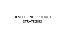 DEVELOPING PRODUCT STRATEGIES Overview of Marketing Management Components of the Marketing Plan Source: Hult et.al, Marketing 16e, South-Western, Cengage Learning 2012 © 2012 South-Western, a part of Cengage Learning PRODUCT STRATEGIES • Product - Components of product Types of products : consumer products, business products Continuum of product-service Product mix, product line Product Life cycle Packaging • Branding • Service • New product The Augmented Product Concept Product Design Decisions for Competitive Advantage • Product: Anything that satisfies a want or need through use, consumption, or acquisition • What is important is how the consumer perceives the product as satisfying a need, not how the seller sees the product Product Design Decisions for Competitive Advantage • The seller must turn the wanted benefits into a tangible product with features and other elements of the augmented product that will provide the intended satisfaction better than competitive products – Features: Tangible or intangible attributes given the product by its designers – Benefits: Solutions to customer problems or needs delivered by the product SIGNIFICANCE OF DESIGN FOR A COMPANY'S PRODUCTS AND SERVICES • To differentiate and position a company's products and services. • Design = the totality of features that affect how a product looks, feels, and functions to a consumer. • Design offers functional and aesthetic benefits and appeals to both consumer’s rational and emotional sides. • How much to invest in form, feature development, performance, conformance, durability, reliability, reparability, and style? • To the company, a well-designed product = easy to manufacture and distribute. • To the customer, a well-designed product = pleasant to look at and easy to open, install, use, repair, and dispose of. HOW PHYSICAL PRODUCTS CAN BE DIFFERENTIATED? Products can be differentiated according to : • Form • Features • Customization • performance quality • conformance quality • Durability • Reliability • Reparability • Style. SERVICE DIFFERENTIATORS • Ordering ease = how easy it is for the customer to place an order with the company • Delivery = speed, accuracy, and care throughout the process. • Installation= Ease of installation is a true selling point for buyers of complex products like heavy equipment and for technology novices. • customer training = helps the customer's employees use the vendor's equipment properly and efficiently. • Customer consulting = data, information systems, and advice services the seller offers to buyers. • Maintenance and repair = help customers keep purchased products in good working order. Marketing Strategy Implications of Consumer Goods Classification CONCEPTS OF PRODUCT-MIX WIDTH, LENGTH, DEPTH, AND CONSISTENCY. • The width = how many different product lines the company carries. • The length = the total number of items in the mix. • The depth = how many variants are offered of each product in the line and is determined by dividing the total number of items by the number of lines. • The consistency = how closely related the various product lines are in end use, production requirements, distribution channels, or some other way. Managing Product Lines for Customer Appeal and Profit Performance • Whether a product line is too short or too long depends on: – The extent to which the market can be segmented – How the company wants to position itself – The stage of product-market evolution Managing Product Lines for Customer Appeal and Profit Performance – Longer product lines generally come about through a series of line extensions , in which additional products are developed to serve more narrowly targeted, or even different, market segments • The criteria for identifying weak products focus largely on the trend of the product’s contribution to profit LINE STRETCHING Occurs when a company lengthens its product line beyond its current range. • down-market stretch (introduce a lower-priced line), • up-market stretch (introduce an upscale line), • two-way stretch (introduce both an upscale line and a down-scale line). E.G. Add two new shoes to the company's middle-of-the-road pricing and product-line strategies. The first pair will retail for $40.00 and has as its target market the “bargain” shopper. The second pair will retail for $200.00 and is targeted at the “sophisticated shopper.” PRODUCT-MIX PRICING (1) product-line pricing—low-, medium-, and high-priced products within the same line. E.G different priced ties; (2) optional-feature pricing—charging for “extra” features. E.G. leather seats in a car; (3) captive-product pricing—when the “user” has no choice but to use the high-priced “disposable” products that make the entire product work (E.G. ink cartridges for printers); (4) two-part pricing—consisting of a fixed fee and a variable usage fee (E.G. cell phone usage); (5) by-product pricing—the price of the by-products of goods being used for other purposes (E.G.oil refining for example); (6) product-bundling pricing—pure bundling when the firm offers its products only as a bundle, or mixed bundling when the firm offers its products as a “bundle” and/or individually. PRODUCT BUNDLING STRATEGY • Do not promote individual products in a package as frequently and cheaply as the bundle. • Limit promotions to a single item in the mix if you still want to promote individual products. • If you decide to offer large rebates on individual products, it must be the absolute exception and done with discretion. BRANDING Branding Decisions – Branding: Identifies and helps differentiate the goods or services of one seller from those of another – Simplifies shopping – Facilitates the processing of information concerned with purchase options – Provides confidence that the consumer has made the right decision – Helps to ensure quality – Satisfies certa