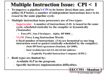 • To improve a pipeline’s CPI to be better [less] than one, and to