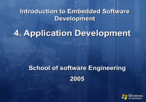 Introduction to Embedded Software Development 4. Application Development School of software Engineering 2005 Agenda Tools and technology Common application develop steps Windows CE feature programming Windows Mobile Development Pocket PC Smartphone Emulator overview Agenda Tools and technology Common application develop steps Windows CE feature programming Windows Mobile Development Pocket PC Smartphone Emulator overview What is App Development? Given a specified Windows CE platform Use the programming interface of the platform to implement kinds of functions. The value of the platform lies in the applications run on it. Development tools for Windows CE App Dev Platform Builder Embedded Visual C++ Visual Studio .NET Embedded Visual Tools 3.0 (Deprecated) Platform Builder Platform Builder Support writing Win CE App / DLL / Lib using Win32 APIs The application will be built into OS kernel Once modify the code, must make image again. Easy to debug OS kernel, difficult to debug application Must generate a debug version of OS Debug Zone Embedded Visual C++ Embedded Visual C++ Support writing Win CE App / DLL / COM / Lib using Win32 API, MFC, ATL and STL Same project management style and UI with Visual C++ 6.0 Easy for debugging and testing Must install corresponding SDK before developing Apps for specified platform Visual Studio .NET Visual Studio .NET 2003 Develop Windows CE App / Assembly using .NET compact framework Can use C#, VB.NET, J#... Integrated Develop Environment in VS.NET Require .NET compact framework installed on your target platform Easy for debugging and testing Embedded Visual Tools 3.0 Includes Embedded Visual Basic 3.0 and Embedded Visual C++ 3.0 Same UI as Visual Studio 6.0 ONLY for Windows CE Version 3.0 Application Development Options Native Application Model Managed Application Model Platform Builder eMbedded Visual Tools Visual Studio .NET 2003 C or C++ C or C++ C# or VB .NET Win32 Applications Win32 Applications .NET Compact Framework Runtime Compiled Windows CE Operating System Application Development Options (Future) Platform Builder Visual Studio 2005 C or C++ C or C++ C# or VB .NET Win32 Applications Win32 Applications .NET Compact Framework 2.x Windows CE Operating System Related Technology ---- What’s your choice? Win32 Microsoft Foundation Class (MFC) .NET Compact Framework Related Technology ---- Size impact Runtime Size (Byte) Size Increment Win 32 9,805,231 0 MFC 10,234,415 429,184 .NET compact framework 11,201,459 1,396,228 * Test is based on "Internet Appliance" platform Related Technology ---- Devtime & Runtime performance Develop time performance .NET Compact framework MFC Win 32 API runtime performance Related Technology ---- Conclusion The decision should be based on whether you have existing Win32/MFC/C#/VB code, the type of code you're writing (drivers, real-time, application), the overall size of your operating system image once the application and runtime have been included, the speed of development of the application, and other considerations such as security and portability. You can mix and match the code depending on which layer of the project you are working on: Win32 for drivers, Win32, MFC, or C#/VB for the end user application. The overall take away is that application developers really can use their desktop knowledge to be immediately productive with Windows CE. Agenda Tools and technology Common application develop steps Windows CE feature programming Windows Mobile Development Pocket PC Smartphone Emulator overview Common Application Develop steps: 1. 2. 3. Get an SDK for specified Windows CE platform. Writing Code and debug under Windows CE Emulator. Make release build and run it on real target device, if necessary debug the app on device using ActiveSync. Step1 : Get an SDK SDK is used by EVC and Visual Studio to develop Apps Two ways of getting SDK Provided by Microsoft or 3rd party vendor Export SDK for our own platform Microsoft Provides: Standard SDK (Common SDK dev) Windows Mobile SDK (Pocket PC…) Export SDK Wizard in PB A tool that creates and exports a software development kit (SDK) based on a particular customized platform. The exported SDK is a set of headers, libraries, run-time files, platform extensions, and Help documentation. Application developers can use the SDK in conjunction with Microsoft eMbedded Visual C++ 4.0 or Microsoft Visual Studio .NET to write applications for a custom platform. • Platform -> Configure SDK • Platform -> Build SDK Relationship between PB, your SDK and Dev tools Demo: Export SDK from PB and use it in EVC Tips : Use your own SDK only if Standard SDK is not suitable. Use Platform ->Configure SDK for detailed SDK configuration. Uninstall SDK from Control Panel. Step 2 : Coding and Debug under Emulator Similar with Visual C++ 6.0 and Visual C++ .NET Leverage your Windows Programming knowledge Platform Manager A communications technology that manages the communications between a development workstation and a CE target device. Platform Manager allows development tools to download and connect to the target device in a media-independent manner. PB, EVC 4.0, and the Microsoft .NET Compact Framework use Platform Manager to download files such as applications, Microsoft ActiveX controls, run times, and remote-tool clients to the target device. ActiveSync Workstation KITL TCP / IP Platform Manager CE Device Remote Tools You can use a development workstation to remotely perform a variety of programming tasks on target device. Certain platforms support certain remote tools. From Tools menu of both PB and EVC Developer can create new remote tools using corresponding interface and APIs. Tool Name Description Remote Call Profiler Provides profiling and analysis tools within a graphical user interface (GUI) that enable you to identify algorithmic bottlenecks in your applications. Remote File Viewer Displays a hierarchical view of the file system on a target device. Remote Heap Walker Displays informatio