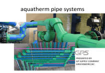 aquatherm pipe systems PRESENTED BY: GP SUPPLY COMPANY GREENSBORO,NC WELCOME TO AQUATHERM WE MAKE THE BEST POLYPROPYLENE PRESSURE PIPING SYSTEMS IN THE WORLD. PERIOD. As we have grown from one man working out of his home garage in Germany forty years ago to the world’s largest and most advanced PP-R pressure pipe manufacturer, Aquatherm has found success through constant improvement and by adapting to customer’s needs. Aquatherm’s products were first introduced to the North American market in 2005 and have been widely used in a variety of projects since. We stand by the philosophy that a better product is better for everyone, including our planet. This catalog provides an introduction to our products and services as well as detailed design and engineering information. Please contact us with any questions or comments you have regarding our piping systems. 1973 Aquatherm founded by Gerhard Rosenberg 1978 Transfer to the first factory in Attendorn, Germany 1985 Factory 1 in Attendorn, Germany completed 1996 Founding of the metal processing company, Aquatherm Metal, in Attendorn 1999 Main campus in Attendorn completed as one complex (factories 1+2, storage, assembly, laboratory and training center) 2002 Logistics center in Attendorn completed 2005 Aquatherm launched in Canada 2007 Aquatherm launched in the United States 2012 Aquatherm North American logistics center established in Lindon, Utah ADVANTAGES OF FUSIOLEN PP-R • Optimized melt index for better fusion connections • Opaque coloring prevents microbiological buildup • Non-leaching • Natural insulation properties • Non-corroding • Heat stabilized fusiolen® PP-R All Aquatherm pipes and fittings are made with a specialized polypropylene-random (PP-R) resin, fusiolen PP-R. fusiolen PP-R is both physically and chemically resistant to the abuse that can damage other materials. It is also a low friction material, protecting it from abrasion and reducing pressure loss. The superior fusion properties of fusiolen PP-R result in a permanent, homogeneous connection that is chemically indistinguishable from the rest of the material. MATERIAL BENEFITS Polypropylene is a thermoplastic polymer that is made up of chains of carbon and hydrogen. Polypropylene-random (PP-R) is a blend of long and short hydrocarbon chains, resulting in a material that is both tough and flexible. This allows it to resist physical impact and stress. As a hydrophobic material, PP-R does not interact with water. It does not corrode or erode and will not leach into the water supply. PP-R has natural insulation properties that allow it to absorb the force from pressure surges and dampen the noise created by water flow and hydraulic shock . SUPERIOR FUSION PROPERTIES fusiolen PP-R is engineered to have an ideal melt index for socket fusion and butt welding, resulting in connections that are strong and homogeneous. fusiolen PP-R does not burn or change during fusion, so the actual point of fusion is chemically indistinguishable from the rest. This prevents weaknesses and cracking in the joints. HIGH TEMPERATURE STABILIZATION fusiolen PP-R is heat stabilized, giving it a much higher safety factor than traditional polypropylene. Under extreme temperatures, fusiolen PP-R will last six times longer without material degradation. fusiolen® PP-R C, the material used in aquatherm blue pipe®, is high-heat stabilized to last even longer. This means that occasional exposure to high temperatures due to mechanical failure won’t damage the Aquatherm pipe systems. MULTILAYER FASER (MF) TECHNOLOGY To increase maximum operating temperatures and improve overall performance, Aquatherm has developed a multilayer fasercomposite (MF) extrusion process. The result is a middle layer in the pipe that is a mixture of glass fibers and Aquatherm’s proprietary fusiolen. This layer allows the pipe to remain rigid at high temperatures and significantly reduce linear expansion. Along with the benefit of reduced expansion, Aquatherm MF pipes are still flexible and require fewer and smaller expansion controls. They can also be buried without any expansion controls or thrust blocking, as the weight of the soil will restrict any movement. Anchors may be required where the pipe penetrates a wall or foundation. The MF technology allows for improved systems without sacrificing any of the other advantages of the pipe. ADDITIONAL BENEFITS In addition to reduced linear expansion, pipes made using the MF process also have the following advantages: • Higher flow rate due to increased inner diameter • Fewer supports needed • Less weight The low concentration of glass fibers in the pipe does not interfere with the fusion process or the recycling process, so all other aspects of installation and use remain the same as with non-MF Aquatherm pipes. ECOLOGICAL ADVANTAGES • Improved efficiency • No toxic materials such as PVC, BPAs, dioxins, phthalates or VOCs • Fully recyclable pipe and fittings • Extended service life • Free of heavy metals • Chemically inert • Emission-free installation AQUATHERM PP-R PIPING SYSTEMS Aquatherm piping systems are ideal for many pressurized applications due to their durability and versatility. To accommodate projects of nearly any size, Aquatherm pipe is available from ½” to 24” in diameter. All of Aquatherm’s pipes and fittings are made from polypropylenerandom (PP-R), a thermoplastic that provides many advantages in piping systems, including heat-fused connections and naturally corrosion-resistant properties. To facilitate integration with other systems, a wide range of transitions are available such as flanges, PEX adapters, brass and steel threads, and copper stub outs. SYSTEM SPECIALIZATION Each of the PP-R systems developed by Aquatherm share the same material benefits, but are also engineered for specific applications. aquatherm green pipe is our signature product, suitable for potable and food-grade applications and much more. aquatherm 