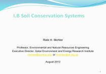 I.B Soil Conservation Systems Rabi H. Mohtar Professor, Environmental and Natural Resources Engineering Executive Director, Qatar Environment and Energy Research Institute mohtar@purdue.edu or rmohtar@qf.org.qa August 2012 1 Materials To Be Covered 1.Principles of Soil Physics (Mohtar) 2.Sediment Transport (Mohtar) 3.Erosion Control (Mohtar) 4.Soil Mechanics (Khawlie) 5.Slope Stabilization (Khawlie) This will provide you with an overall review and not necessarily makes you an expert! I.B Mohtar 2 Sources 1. 2. 3. Environmental Soil Physics; Hillel; 1998 Hillel (1998) Essentials of Soil Mechanics & Foundations, 7th ed.; McCarthy; 2007; McCarthy (2007) Soil and Water Conservation Engineering a) b) 4. 5. 6. 7. 8. 4th ed. Schwab, Fangmeier, Elliott, Frevert: Schwab et al (1993) 5th ed. Fangmeier, Elliott, Workman, Huffman, Schwab: Fangmeier et al (2006) Design Hydrology & Sedimentology for Small Catchments; Haan, Barfield, Hayes: Haan et al (1994) USLE/RUSLE: USDA Agricultural Handbook No. 537 (1978) Cuenca, R. H. 1989. Irrigation System Design - An Engineering Approach. Prentice-Hall, Inc., Englewood Cliffs, NJ. 552 pp. Cuenca (1989). Ward, Elliot 1995 (Environmental Hydrology, Lewis Publishers). http://cobweb.ecn.purdue.edu/~abe325/: Mohtar soil and water resources conservation course. I.B Mohtar 3 Soil Physics & Mechanics 1. Soil classes and particle size distributions 2. Basics of soil water a) Water Content b) Water Potential c) Water Flow 3. Soil strength & mechanics I.B Mohtar 4 Soil classes & particle sizes Hillel (1998) page 61 I.B Mohtar 5 Soil Classes & Particle Sizes - 2 ISSS classification is easiest 1. Sand 0.02-2.0mm (20-2000μ) 2. Silt 0.002-0.02mm (2-20μ) 3. Clay <0.002mm (<2μ) I.B Mohtar 6 Soil classes & particle sizes – 3 Soil Textural Triangle Example 1: Find the soil texture for this soil: 50% sand, 20% silt Hillel (1998) page 64 I.B Mohtar 7 Soil Classes & particle sizes – 4 Particle size distribution Example 2 Draw in a sandy clay loam? Hillel (1998) page 65 I.B Mohtar 8 Soil Structure and Functionality Clay particles Primary Inter-ped peds pore space Primary mapping soil Primary soil unit Soil mapping type unit Geomorphological unit Pedostructure, primary peds, primary particles, are functionally defined and quantitatively determined using the shrinkage and potential curve measurement I.B Mohtar Horizon Pedostructure = = Vertical porosity (cracks, fissures) + Pedostructure Mineral grains Interpedal porosity (macro-porosity) + Primary peds and free mineral grains Mohtar (2008) Clay pore space Primary ped = Clay plasma porosity (micro-porosity) + Primay particles and pedological features 9 Soil Water Content 0 1. Mt = Ms + Mw + Ma 2. Vt = Vs + Vw + Va a. t = total, s = solids, w = water, a = air 3. ρb = bulk density = Ms/Vt≈ 1.1-1.4 g/cc (why dry basis?) 4. ρp = particle density = Ms/Vs ≈ 2.65 g/cc 5. Porosity = (Vw + Va) / Vt ≈ 25-60% 6. ρw = water density = Mw/Vw = 1.0 g/cc I.B Mohtar 10 Soil Water Content – 2 Water content wet basis: Ww = Mw / (Ms + Mw) Water content dry basis: W = mass wetness = Mw / Ms Volumetric water content: θ = Vw/Vt = Vw / (Vs + Vw + Va) I.B Mohtar 11 Calc.: soil water content Soil Water Example 3. Given: Soil with 30% water content dry basis Find? Best guess at equivalent inches of water in the top foot of soil? I.B Mohtar 12 Calc.: soil water content – 2 1. Mw / Ms = 0.30 a. Mw = Vw * ρw b. ρb = Ms / Vt; Ms = Vt * ρb I.B Mohtar 13 Calc.: soil water content – 3 Mw / Ms = (Vw * ρw)/(Vt * ρb) = (Vw / Vt)(ρw / ρb) θ = Vw/Vt θ *(ρw / ρb) = 0.3; θ = (ρb / ρw) * 0.3 θ = 0.3 *(1.3/1.0) = 0.39 0.39 * 1 ft * 12”/ft = 4.7” I.B Mohtar 14 Soil Water Potential soil characteristic curve Hillel (1998) page 157 I.B Mohtar 15 Soil Water Potential – 2 I.B Mohtar Cuenca (1989) page 58 16 Soil Water Management Ward, Elliot 1995 (Environmental Hydrology, Lewis Publishers) I.B Mohtar 17 Soil Water Potential – 3 Fangmeier et al (2006) page 337 I.B Mohtar 18 Soil water potential – 4 Hillel (1998) page 162 I.B Mohtar 19 Calc.: soil water potential Soil Water Potential Example 4. Given: Mercury tensiometer SG = 13.6 Situation as shown Find: 1. Total potential at point C 2. Is point C above or below the current water table? Cuenca, (1989) page 64 I.B Mohtar 20 Calc.: soil water potential - 2 1. Pick datum 2. Add pressures a. Suction b. Water depth c. Gravity 3. T = z + p + pos a. z = + 80 cm b. p = ? c. T = -86cm d. Point C is above water table. Why? I.B Mohtar 21 Soil Water Flow q = A*K*H/L K = (q*L)/(A*H) K values A H L Fangmeier et al (2006) page 261; Schwab et al (1993) page 359; Haan et al (1994) page 430 I.B Mohtar q 22 Calc.: soil water flow Darcy Law Application Example 5. Given: Need 50000 gpd through a 1-ft thick sand filter with K = 8 ft/d, and a total driving head of 3 ft Find? Required diameter for circular tank? I.B Mohtar 23 Calc.: soil water flow – 2 q = A*K*H/L; A = (q*L)/(K*H) 50000 gal 1 ft day 1 1 ft 3 278 ft 2 A day 1 8 ft 3 ft 7.481gal d 4A 18 ft I.B Mohtar 24 Soil erosion and sediment yield Hillslope erosion Channel system erosion Sediment delivery to streams Sediment transport in streams Slope stability I.B Mohtar 25 Hillslope soil erosion Background Detachment Raindrop impact By turbulent overland flow Runoff Transport downslope By runoff Schwab et al (1993) pp:91-111; Fangmeier et al (2006) pp:134-156; Haan et al (1994) pp:238-285 I.B Mohtar 26 Hillslope Soil Erosion Background At the top of the slope Detachment by raindrop impact Transport by shallow sheet flow Sheet erosion USDA-NRCS I.B Mohtar 27 Hillslope soil erosion background - 2 Lower on slope Small flow concentrations Start to cut small channels Rills Roughly parallel Head straight downslope Random formation USDA-NRCS Flow from sheet areas between rills Sheet and rill erosion I.B Mohtar 28 Hillslope Soil Erosion Background - 3 Bottom of hillslope Ends at concentrated flow channel Low area in macrotopography “ephemeral gullies” I.B M