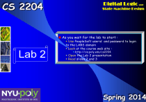 CS 2204 Digital Logic and State Machine Design As you wait for the lab to start : Lab 2 Use PeopleSoft userid and password to login to the LABS domain Look at the course web site : http://cis.poly.edu/cs2204 Open the Lab 2 presentation Read slides 2 and 3 Spring 2014 Lab 2 Outline Presentation Read also next slide Using CS2204 Lab & Engineering Fundamentals Engineering Environment Fundamentals Digital Design Trends • Digital Design Techniques Using Term Project (pages 1 – 7) The term project operation • The input/output relationship ≡ Purpose ≡ Game rules Individual work Programming the FPGA chip Learning the rules of the game Playing the three different versions of the Ppm game Understanding the concept of the machine player strategy New Handouts Term Project CS 2204 Spring 2014 Lab 2 Page 2 While waiting for lab to start, do the following : Reserve seats for your partners Make sure there are enough seats next to you Only the last group arriving to the seats are on two rows • These two rows are rows 2 and 3 and the seats are near the wall Login to the LABS domain Create a CS2204 folder on the S drive and on your laptop If you cannot login nor see the S drive go to 337RH after this lab Take a look at the course web site : http://cis.poly.edu/cs2204 Download this presentation and term project files to your CS2204 folder If you have not formed a team, look around to form a team and sit next to your partners if you can CS 2204 Spring 2014 Lab 2 Page 3 Engineering Environment Fundamentals Engineering Environment, especially the digital engineering environment, is demanding Technology advances rapidly A very dynamic environment • Constant learning • Constant adaptation • Global team work Even experienced engineers can be stressed out Students need to keep this in mind and get ready for that environment CS 2204 Spring 2014 Lab 2 Page 4 Engineering Environment Fundamentals Companies ask job candidates Can you adapt ? Are you flexible ? Are you a team player ? CS 2204 Spring 2014 Lab 2 Page 5 Engineering Environment Fundamentals Students need to take the advantage of their college study to be ready Students need to learn how to learn fast Students need to have a solid technical foundation Students need to practice interacting with people Their peers, senior people and junior people • This is often summarized as communication skills, but it is more than that CS 2204 Spring 2014 Lab 2 Page 6 Taking the Advantage of College Study Each course and professor are different, students adapt to the course and professor Different courses and professors help students Learn how to learn in a short time period Gain the technical foundation of their area Learn how to interact with people Labs are a good medium to acquire them CS 2204 Spring 2014 Lab 2 Page 7 Today’s Engineering Environment Globalized Tight deadlines Tight budgets Managers and employers seek for two points Are you systems oriented ? Can you relate parts ? Can you solve problems ? CS 2204 Spring 2014 Lab 2 Page 8 Are You Systems Oriented ? On a global scale ? They want to see that not only that You know your part (block) of the system (black box) but other parts (blocks) and You can relate all the parts But, you need to be prepared for that This can be an opportunity to prove yourself ! You can say “No“ ! But, it should not be the following • “My job is only this part (block) ! I do not know the other parts” CS 2204 Spring 2014 Lab 2 Page 9 Can You Solve Problems ? On a global scale ? You are expected to say “Yes, I can do it” But, you need to know how to approach solving problems ! • Studying past exams is not a good practice to be ready Do not be afraid of taking on problems Do not be afraid of learning more This can be an opportunity to prove yourself ! If you are systems oriented, it is easier to be a problem solver You can say “No“ ! But, it should not be one of the following • I cannot do it ! • I do not know about it ! • I never learned ! CS 2204 Spring 2014 Lab 2 Page 10 Today’s Engineering Environment These two points become even more important when there is an economic recession which forces companies To outsource To reduce staffing While they manufacture about the same number of systems CS 2204 Spring 2014 Lab 2 Page 11 Engineering Environment Fundamentals Technical Performance is not everything Especially as you become more senior You will supervise junior engineers • Junior engineers will look upon you Non-technical skills means one knows what to do how, where and when First thing first, be patient (cool) and do not lose temper In addition, senior engineers need to Speak well Be good listeners Inspirational Motivational Firm and fair CS 2204 Spring 2014 Lab 2 Page 12 Engineering Environment Fundamentals Do not take anything that is not earned Respect intellectual property (IP) How would you feel if it was your IP ? But, do not be on a one-person crusade Do not be : “I do my work and do not need anyone” • Perhaps today ! How about tomorrow ? We are not machines • We all need each other CS 2204 Spring 2014 Lab 2 Page 13 Engineering Environment Fundamentals Help others No one can survive alone Communicate with people around you Practice it • You will need it when you are a senior engineer Help before you ask for help CS 2204 Spring 2014 Lab 2 Page 14 Engineering Environment Fundamentals Find the balance between working hard and helping others Hint for success Smile As a senior engineer/project manager/supervisor you need to be approachable by junior engineers Have you smiled today ? If no, why ? CS 2204 Spring 2014 Lab 2 Page 15 CS2204 engineering environment Problem solutions for systems Keep focusing on the big picture Technical and non-technical dynamics Learn/practice with teammates, TAs and the professor Do not ignore the non-technical side Team-oriented labs and homework Rules and regulations to acquire technical and nontechnical skills The professor and TAs are the pr