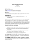 Writing & Rhetoric II: Ethnography. Fall 2011 (52-1152-08) M/W 10:30-11:50 am 33 E Congress Building, Rm. 543 Instructor: John Casey Office: 33 East Congress, Suite 527. Office Phone: 312-369-8125 (Leave a message for John Casey). E-mail: jcasey@colum.edu (This is the best way to get in touch with me). Office Hours: Mondays and Wednesdays from 3:30-5:30 or by appointment. Required Texts: UNLESS OTHERWISE NOTED IN THE SYLLABUS, ALL TEXTS ARE AVAILABLE ONLINE THROUGH THE OASIS WEBSITE FOR THE COURSE. Recommended Texts: Maimon, Elaine P., Peritz, Janice H., and Yancey, Kathleen Blake, (eds.) A Writer’s Resource—A Handbook for Writing and Research. Mc-Graw Hill. Third Edition. 2010. Course Description: Writing & Rhetoric II is designed to assist students in the use of writing to develop and sustain an in-depth personal and intellectual inquiry into a subject of their choosing. The course unfolds in a series of reading and writing assignments designed to lead students through the research process with the ultimate goal being a written project of considerable length and complexity. Focusing particularly on research methodology, within a broad course theme, students will learn to engage the work of others while generating their own worthwhile questions, collect primary data, locate secondary resources relevant to their primary research, and from the data collected (both primary and secondary) develop original research insights. By the end of this class, students should be able to: use research and essay-writing to dialogue with published authors about topics of public concern; use research and essay-writing to explore original ideas in considerable depth and at sustained length; identify argumentative claims and evaluate supporting detail; use numerous kinds of published sources to enhance and complicate their own ideas, using MLA style citation, and maintaining a strong personal voice; acquire editing skills that will advance their level of syntactical maturity; be able to analyze and respond to argumentative texts critically. Class Attendance Policy: You are allowed four absences without penalty. I will deduct five points from your final grade for each additional absence. If you are more than fifteen minutes late to class, you will be marked as absent. Late Assignments: Assignments must be turned in on time. I will not grade late assignments. Also, if you know that you will be absent on the day that an assignment is due, please make prior arrangements to deliver a hard copy of the assignment to me. I do not accept electronic submissions of final drafts. Academic Integrity: Plagiarism is no joking matter. It is an offense that can lead to expulsion from the College and possibly even criminal charges. The Columbia College Chicago Catalogue states that “The College prohibits all forms of academic dishonesty. ‘Academic Dishonesty’ is understood as the appropriation and representation of another’s work as one’s own, whether such appropriation includes all or part of the other’s work or whether it comprises all or part of what is represented as one’s own work (plagiarism).” If I suspect that an assignment has been plagiarized in parts or in its entirety, I will not grade it. This will lead to a failing grade and repeating the course. Campus Resources: Be aware that as a student at Columbia College there are many resources available to you. These include the college Library, Museum of Contemporary Photography, and gallery spaces for your course research. The Writing Center, which is part of the Learning Studio located on the first floor of the 618 S. Michigan Ave. Building, is an excellent place to go for extra help with reading and writing in the class. Here you’ll find peer and staff tutors able to give you an unbiased opinion on your work. Students with personal issues are encouraged to seek out the services of the Counseling Center, located at 731 South Plymouth Court, room 112. Those students who need accommodation for a disability or have special needs are encouraged to visit the Services for Students with Disabilities office, located on the fifth floor of the 33 East Congress Building or contact the program’s administrator, Sandra K. Saunders, at 312-369-8134 or TTY 312-369-8178. Students must be registered with the Services for Students with Disabilities office in order to receive special accommodations in this class. You can find out more about these services by contacting one of the English Department’s Student Advocates at 312-369-8199 or at engadvocate@colum.edu Grading: There is one primary writing assignment for the class, the ethnography paper that you will turn in during the last two weeks of class. The other reading and writing that you will do is designed to assist you in the completion of this final project. The final draft of your ethnography should be approximately 10-15 pages long (double-spaced, 12 point font) and all sources should be properly documented using the MLA style. Class participation involves more than just showing up to class on time, although that is important. I will expect you to be respectful of others in the class and contribute periodically to class discussion. See appendices (at the end of the syllabus) for information on Field Notes, Resource Review, and Cultural Autobiography. Ethnography Field Notes Resource Review Cultural Autobiography Class Participation 30% 30% 15% 10% 15% Daily Class Schedule for Writing & Rhetoric II **This schedule is subject to change. Week One: Examining Ethnographic Writing. 9/7- Class Activities: Introduction to the class. Review Syllabus. Personal introductions. Read selections from Engaging Communities, Chapter 2 in class. Discuss the difference between ethnographic writing and a research paper. Skills Focus: Examine the concept of ethnography in relation to the more traditional research paper. Monday, September 12. Last day to ADD classes or change sections. Week Two: Introduction to Urban Ethnogra