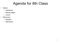 Agenda for 8th Class • Admin – Handouts – Name plates – Lunch • Discovery – Experts – Sanctions 1 Assignment for Next Class I – Summary Judgment – FRCP 56 – Yeazell pp. 581-96 – Yeazell pp. 581ff Qs 1, 2c – Briefly summarize Celotex. Be sure to discuss what evidence each side submitted to the court? Why was plaintiff’s evidence not clearly sufficient to defeat defendant’s summary judgment motion? Why was defendant’s evidence possibly sufficient for its summary judgment to be granted? – In Celotex, what could the plaintiff’s lawyer have done during discovery to have had a better chance of defeating defendant’s motion for summary judgment? – In Celotex, what, if anything, could plaintiff’s lawyer do after the Supreme Court issued its opinion in order to win the case for plaintiff? – Yeazell pp. 588ff Qs 1c, 5 2 Assignment for Next Class II • Summary Judgment (continued) – Briefly summarize Bias. Be sure to discuss what evidence each side submitted to the court? Why did the court grant summary judgment to the defendant? – In Bias, is it possible that the plaintiff would have prevailed at trial? How? If your answer is “yes,” why wasn’t he able to defeat the summary judgment motion? – If you were the plaintiff’s lawyer in Bias, what could you have done which might have helped you defeat summary judgment? – Yeazell p. 596 Q4 – Optional Glannon Ch 23 • A Civil Action • Read through p. 448 by October 22 – Pay special attention to settlement negotiations • Finish by October 28 – Pay special attention to fees 3 Summary Judgment I • Burdens of proof – Burden of production. Who wins if neither side produces any evidence • If plaintiff has the burden of production, then defendant wins if plaintiff presents no evidence – Burden of persuasion. Preponderance of evidence (civil), beyond reasonable doubt (criminal) • If plaintiff has burden of persuasion and relevant standard is preponderance of evidence, the defendant wins if plaintiff and defendant each present evidence that is equally persuasive – In general • Burden of production and persuasion go together • Plaintiff usually has both burden of production and persuasion – Except defendant usually has burden of production and persuasion on defenses • Burden of proof is very important for SJ – Person without proof has much easier time winning SJ 4 – So SJ is usually defendant’s motion Summary Judgment II • Logical Structure of law suit – Plaintiff must usually prove several things to win • Negligence: Duty AND Negligence AND Proximate Cause • Breach of Contract: Contract AND Breach – Defendant can usually win by proving just one thing • Disproving one element of plaintiff’s cause of action – Negligence: Defendant wins if No Duty OR No negligence OR No Proximate Cause – Beach of Contract: Defendant wins if No contract OR No breach • Showing that plaintiff hasn’t proven one element – Same logical structure • Proving one affirmative defense – Assumption of Risk, Condition precedent, etc. – Another reason SJ is generally defendant’s motion 5 Summary Judgment III • Legal Standard – “no genuine dispute as to any material fact and movant entitled to judgment as a matter of law.” – “movant” = person making SJ motion (usually defendant) – Undisputed facts show that moving party prevails – No reasonable juror could find for non-moving party • Non-moving party is party opposing motion (usually plaintiff) • Judge is not supposed to determine credibility – Especially of non-moving party’s witnesses – In theory, non-moving party could prevail by showing the moving party’s witnesses are not credible (just as could at trial) • But that is rare. Hard to challenge credibility at SJ. Judges usually believe moving party’s witnesses, unless non-moving party can produce witness to contract them • Summary judgment forces parties to do thorough discovery 6 – Must depose witnesses etc., so have information to oppose SJ Summary Judgment IV • Mechanics – Each side submits memoranda discussing evidence and appendix of documents, deposition transcripts, affidavits, and other evidence – Affidavits are sworn written statements – Affidavits and deposition transcripts substitute for live testimony • To be useful, statements must be such that, if made live at trial, they would be admissible – First hand knowledge, not hearsay, facts (not opinions, unless expert) 7 Summary Judgment V • In general, summary judgment motion is made after discovery is complete, which is usually a few months before trial – If party makes motion for SJ before then, non-moving party may request delay to complete discovery. 56(d) – Party can move for summary judgment anytime between filing of complaint and trial • Rule 12(d) says that pre-answer motion which includes matters outside the pleading should be treated as SJ motion • Nevertheless, ordinarily, SJ motion filed before completion of discovery will not be considered. See Rule 56(d)(1) – Early SJ is only appropriate when party has conclusive evidence on decisive issue • Defendant in promissory note case has canceled check • Deposition indicates that condition precedent not satisfied • Note also that court can grant partial summary judgment – SJ on one issue, even if not decisive 8 – Plaintiff could get partial SJ on duty, leaving negligence for trial Last Class I • Information gathering • Private investigation • Disclosure / discovery – Work Product • Hickman based on policy, not rule – Preserve adversarial incentives to gather evidence – Not discourage lawyers from putting notes in writing • 26(b)(4) protects only “documents and tangible things” – i.e. 26(b)(4) applies only to requests under Rule 34 – But most judges interpret 26(b)(4) broadly to include requests for information by other methods (e.g. interrogatories, depositions) » 