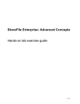 ShareFile Enterprise: Advanced Concepts Hands-on lab exercise guide Page 1 Table of Contents Table of Contents .............................................................................................................................................. 2 Overview............................................................................................................................................................. 3 Request a ShareFile trial account .................................................................................................................... 5 Scenario ............................................................................................................................................................... 6 Exercise 1: On-Premise StorageZones........................................................................................................... 7 Exercise 2: User Management ....................................................................................................................... 20 Exercise 3: Enable SSO with ADFS v2 ....................................................................................................... 40 Exercise 4: Configuring On-Demand Sync ................................................................................................. 77 Page 2 Overview Objective Provide hands-on experience with configuring Citrix ShareFile Prerequisites NA Audience Citrix Partners and Customers. Lab Environment Details AD.training.lab ADFS StorageZones Virtual Machine Information VM Name Router (Hidden) AD.training.lab Win7Client IP Address 192.168.10.1 Description / OS Lab Router / Vyatta ADFS StorageZones 192.168.10.30 Microsoft ADFS 2.0 192.168.10.40 ShareFile Storage Center 192.168.10.11 Active Directory 192.168.10.13 Microsoft Windows 7 client Username training\administrator training\administrator training\user1 training\administrator training\administrator Password Citrix123 Citrix123 Citrix123 Citrix123 Citrix123 Service Accounts Username adfsadmin szadmin Password Citrix123 Citrix123 Description ADFS Service Account ShareFile StorageZones Service Account Page 3 How to log into the lab environment Follow the directions below to access the lab environment. Step 1. Action Launch your web browser and go to http://ilt.citrixvirtualclassroom.com. 2. On the website, type in the session code provided by your instructor and your business email address. Click “Get started”. 3. Once you’ve logged in, click the Start Lab button. This will launch your lab session. Note: Please wait for the application to launch. 4. Right-click XenCenter and select Add. 5. On the Add New Server screen enter the XenServer IP address provided on the website and in the Password field enter the password provided on the site. Page 4 Request a ShareFile trial account Follow the directions below to get access to a ShareFile trial account. Step 1. 2. 3. Action Launch your web browser and go to http://www.citrix.com/embedded/download/sharefile/account-registration. On the website, fill out the form and agree to the terms and conditions. Then Submit your registration request. Within a few minutes you will receive an email message from ShareFileFMD@citrix.com. Click on the link provided in the message or go to http://www.sharefile.com/login.aspx in your browser. 4. Provide the email address and password you used during the registration. Then click Log In. 5. After logging in, look at the address bar. This is your ShareFile subdomain that you will need during the exercises. Page 5 Scenario You are the system administrator at Synergy Training Solutions. The CEO wants to enable a cloud-based file sharing solution, so all employees are able to access all their data, any time and from any device, and share that data with their contacts at business partners and customers. The CIO does have some additional requirements, as she has to make sure the company security policies are followed and the solution is compliant with the compliance regulations for your industry. Additional requirements from the CTO: All data has to be stored inside the corporate datacenters. Users accessing the data need to log on using their Active Directory credentials. As the company uses a VDI environment hosted by XenDesktop with pooled desktops, the amount of data synced to the virtual desktops needs to be kept to a minimum. With these requirements in mind, you start implementing a solution based on Citrix ShareFile. To fulfill all the requirements from the CTO, you use ShareFile StorageZones with on-premise storage, federated authentication by using Microsoft ADFS v2.0 and you configure On-Demand Sync for the ShareFile Sync client. Page 6 Exercise 1: On-Premise StorageZones Overview For this exercise, we will create an on-premise storage zone that allows users to store files on premise in a CIFS file share instead of in the ShareFile cloud. An empty file share has been created for you at \\AD\StorageZone. Note: On-premise StorageZones require a server with a public Internet address and a trusted SSL certificate. The Internet Information Services role of Windows Server 2008 R2 in your environment has already been configured with a trusted wildcard certificate to complete the installation. Step-by-step guidance Estimated time to complete this lab: 25 minutes. Step Action 1. Using XenCenter select StorageZones and select the Console tab 2. Log on using the following credentials: Username: TRAINING\administrator Password: Citrix123 3. Open Windows Explorer and go to \\AD\Software. 4. Navigate to the StorageZone Controller 2.0 folder and run the StorageCenter.msi installer. When prompted, click Run. 5. Click Next. Page 7 Step 6. Action Select the Checkbox to accept the License Agreement and click Next. 7. Click Next to accept the default installation location. 8. Click Install. Page 8 Step 9. Action Ensure the Checkbox to Launch Storage Center Configuration Page is unchecked, then click Finish. 10.
