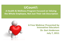 UCount!: A Health & Wellness Program Focused on Valuing the Whole Employee, Not Just Their Job Description A Free Webinar Presented by Innovative Educators Dr. Geri Anderson July 7, 2011 Employee Climate Survey Introduction Providing a positive work environment for employees of the 13 colleges and the system office is a priority for the Colorado Community College System. As we continue to focus on that priority, we need your assistance in assessing our current work environment from an employee’s perspective. We would like to request that you take 25-35 minutes to complete this important survey. The information gathered will help to guide decision making, assist in planning processes, and improve the management practices and work environments across our system. While your participation is voluntary, we truly value your input and hope that you can set aside the time to participate. Please be assured that your responses are strictly confidential. We will not know the names of anyone who responds to this survey, nor will the results be reported in a way that any one individual can be identified. Please complete this survey by close of business Wednesday, XXX XX, XXXX. If you have any specific questions regarding this survey, you may contact XXX XXXX at e-mail address. Demographics 1. What is your occupational group? Administration or Professional/Technical Classified Staff 2. What is the highest level of education you have attained? Some High School High School Diploma or G.E.D. Apprenticeship or Training in a Skilled Trade Some College Associates Degree Bachelor's Degree Master's Degree Doctorate 3. What is your age group? Under 30 years 30 - 39 years 40 - 49 years 50 - 59 years 60 - 69 years 70 + years 4. What is your gender? Female Male I plan to work for my college for the next ___ years. 1-2 years 3-4 years 5-6 years 7-8 years 9 + years I rarely think about quitting. Strongly Agree Agree Disagree Strongly Disagree Unknown If you are planning to leave your current employment, for reasons other than retirement, please indicate the reason(s) why. Career Change Conflict with Co-workers Conflict with Supervisor Dissatisfaction with Job Duties Lack of Advancement Moving or Relocation Pay & Benefits Working Conditions Other (please specify) I am planing to retire in the next ___ years. 1-2 3-4 5-6 7-8 years 9+years Work Content The work I do is meaningful to me. Strongly Agree Agree Disagree Strongly Disagree Unknown Overall, I like the work I do. Strongly Agree Agree Disagree Strongly Disagree Unknown My work is sufficiently challenging for me. Strongly Agree Agree Disagree Strongly Disagree Unknown Doing my job well gives me a sense of personal satisfaction and accomplishment. Strongly Agree Agree Disagree Strongly Disagree Unknown My workload is reasonable. Strongly Agree Agree Disagree Strongly Disagree Unknown My job duties and priorities are clear. Strongly Agree Agree Disagree Strongly Disagree Unknown My college gives me the training I need to do my job well. Strongly Agree Agree Disagree Strongly Disagree Unknown I have the tools and resources I need to do my job well. Strongly Agree Agree Disagree Strongly Disagree Unknown I feel motivated to do a good job. Strongly Agree Agree Disagree Strongly Disagree Unknown I seldom feel 'burnt out' by my job. Strongly Agree Agree Disagree Strongly Disagree Unknown I feel that my coworkers are motivated to do a good job. Strongly Agree Agree Disagree Strongly Disagree Unknown I work in an environment that supports team work. Strongly Agree Agree Disagree Strongly Disagree Unknown Work Content, Continued In my work unit, we have enough people to get the work done. Strongly Agree Agree Disagree Strongly Disagree Unknown In my work unit, we have the right people to do the work. Strongly Agree Agree Disagree Strongly Disagree Unknown Duties are distributed fairly in my work unit. Strongly Agree Agree Disagree Strongly Disagree Unknown People in my work unit cooperate with one another. Strongly Agree Agree Disagree Strongly Disagree Unknown I enjoy working with my colleagues. Strongly Agree Agree Disagree Strongly Disagree Unknown I respect my supervisor. Strongly Agree Agree Disagree Strongly Disagree Unknown My supervisor treats people fairly. Strongly Agree Agree Disagree Strongly Disagree Unknown My supervisor shows respect to his/her staff. Strongly Agree Agree Disagree Strongly Disagree Unknown My most recent performance evaluation was fair. Strongly Agree Agree Disagree Strongly Disagree Unknown Please include any additional comments that you feel are relevant to the questions asked in the section 3 of this survey above. Compensation I understand how pay rates are determined. Strongly Agree Agree Disagree Strongly Disagree Unknown I understand how job titles are assigned. Strongly Agree Agree Disagree Strongly Disagree Unknown I believe that our college/system pay policies are administered fairly. Strongly Agree Agree Disagree Strongly Disagree Unknown I am appropriately paid for the work I do at my college. Strongly Agree Agree Disagree Strongly Disagree Unknown I am appropriately paid compared with others doing similar work, with similar levels of education and experience at my college. Strongly Agree Agree Disagree Strongly Disagree Unknown My salary reflects my performance and contribution to the college. Strongly Agree Agree Disagree Strongly Disagree Unknown I believe that my salary is competitive with other employers in the area where I could perform similar work. Strongly Agree Agree Disagree Strongly Disagree Unknown I believe that pay increases should be based primarily on performance. Strongly Agree Agree Disagree Strongly Disagree Unknown I believe that pay increases should be based primarily on length of service. Strongly Agree Agree Disagree Strongly Disagree Unknown Please include any additional comments that you feel are relevant to the Benefits I believe our health benefits (medical, dental, vision) compare well with those o