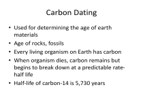 • Carbon dating is used to help estimate the age