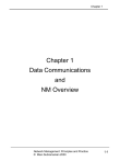 Chapter 1 Chapter 1 Data Communications and NM Overview Network Management: Principles and Practice © Mani Subramanian 2000 1-1 Chapter 1 Outline • Analogy of telephone network • Data and telecommunication network • Distributed computing environment • Internet • Protocols and standards • IT management • Network and system management • Current status and future of network management Notes Network Management: Principles and Practice © Mani Subramanian 2000 1-2 Chapter 1 Telephone Network • Characteristics: • Reliable - does what is expected of it • Dependable - always there when you need it (remember 911?) • Good quality (connection) - hearing each other well • Reasons: • Good planning, design, and implementation • Good operation and management of network Notes Network Management: Principles and Practice © Mani Subramanian 2000 1-3 Chapter 1 Telephone Network Model Regional Center Class 1 switch Regional Center Class 1 switch Sectional Center Class 2 switch Sectional Center Class 2 switch Primary Center Class 3 switch Primary Center Class 3 switch Toll Center Class 4 switch Toll Center Class 4 switch End Office Class 5 switch End Office Class 5 switch To other Regional centers Sectional centers Primary centers Toll centers End offices To other Primary centers Toll centers End offices To other Class 4 toll points End offices Legend: Loop Direct Trunk Toll-Connecting Trunk Voice Voice Toll Trunk Figure 1.1 Telephone Network Model Notes • Notice the hierarchy of switches • Primary and secondary routes programmed • Automatic routing • Where is the most likely failure? • Use of Operations Systems to ensure QoS Network Management: Principles and Practice © Mani Subramanian 2000 1-4 Chapter 1 Operations Systems / NOC • Monitor telephone network parameters • S/N ratio, transmission loss, call blockage, etc. • Real-time management of network • Trunk (logical entity between switches) maintenance system measures loss and S/N. Trunks not meeting QoS are removed before customer notices poor quality • Traffic measurement systems measure call blockage. Additional switch planned to keep the call blockage below acceptable level • Operations systems are distributed at central offices • Network management done centrally from Network Operations Center (NOC) Notes Network Management: Principles and Practice © Mani Subramanian 2000 1-5 Chapter 1 Data and Telecommunication Network Data communication network Terminal Terminal Host Modem Modem Loop Loop Modem Loop Voice Voice Telecommunication network Figure 1.3 Data and Telecommunication Networks Notes • Computer data is carried over long distance by telephone (telecommunication network) • Output of telephone is analog and output of computers is digital • Modem is used to “modulate” and “demodulate” computer data to analog format and back • Clear distinction between the two networks is getting fuzzier with modern multimedia networks Network Management: Principles and Practice © Mani Subramanian 2000 1-6 Chapter 1 IBM SNA Architecture Workstation Workstation Cluster controller Cluster controller Communications controller Communications controller Mainframe Figure 1.5 IBM Systems Network Architecture Model Notes • IBM System Network Architecture (SNA) is a major step in network architecture • SNA is based on multitude of (dumb) terminals accessing a mainframe host at a remote location Network Management: Principles and Practice © Mani Subramanian 2000 1-7 Chapter 1 DCE with LAN DCE.. Distributed Computing Environment Workstation Host Workstation Ethernet Workstation Host (a) Hosts and Workstations on Local LAN Notes • Driving technologies for DCE: • Desktop processor • LAN • LAN - WAN network Network Management: Principles and Practice © Mani Subramanian 2000 1-8 Chapter 1 LAN-WAN Network LAN A LAN B Bridge / Router Bridge / Router Bridge / Router LAN C WAN communication link Notes • Major impacts of DCE: • No more monopolistic service provider • No centralized IT controller • Hosts doing specialized function • Client/Server architecture formed the core of DCE network Network Management: Principles and Practice © Mani Subramanian 2000 1-9 Chapter 1 Client/Server Model Request Control transf er Client Server Control transf er Response Figure 1.7 Simple Client-Server Model Notes • Post office analogy; clerk the server, and the customer the client • Client always initiates requests • Server always responds • Notice that control is handed over to the receiving entity. Network Management: Principles and Practice © Mani Subramanian 2000 1-10 Chapter 1 Client/Server Examples Client A Client Z Server (a) Server with Multiple Clients Client (joe.stone) to sally.jones@dest.com Bridge Mail server Domain Name Server (b) Dual Role of Client-Server Figure 1.8 Client-Server in Distributed Computing Environment Notes Network Management: Principles and Practice © Mani Subramanian 2000 1-11 Chapter 1 TCP/IP Based Networks • TCP/IP is a suite of protocols • Internet is based on TCP/IP • IP is Internet protocol at the network layer level • TCP is connection-oriented transport protocol and ensures end-to-end connection • UDP is connectionless transport protocol and provides datagram service • Internet e-mail and much of the network mgmt. messages are based on UDP/IP • ICMP part of TCP/IP suite Notes Network Management: Principles and Practice © Mani Subramanian 2000 1-12 Chapter 1 Internet Configuration Workstation (Joe) Mail Server Workstation LAN A Domain Name Server LAN B Bridge / Router Bridge / Router Bridge / Router LAN C Gateway WAN Gateway LAN X Bridge / Router Bridge / Router Bridge / Router LAN Z LAN Y Workstation PC (Sally) Mail Server Figure 1.9 Internet Configuration Notes • Walk through the scenario of e-mail from Joe to Sally Network Management: Principles and Practice © Mani Subramanian 2000 1-13 Chapter 1 Architecture, Protocols and Standards