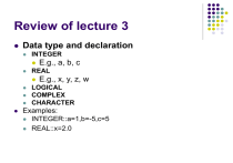 Review of lecture 3