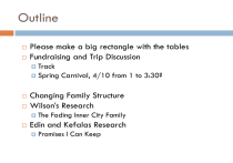 Outline Please make a big rectangle with the tables Fundraising and Trip Discussion Track Spring Carnival, 4/10 from 1 to 3:30? Changing Family Structure Wilson’s Research The Fading Inner City Family Edin and Kefalas Research Promises I Can Keep Fundraising and a Trip to Campus For each task you volunteer for and complete, I’ll give ¼ point on your assignment grade Fundraising new information or loose ends Change jars; Track; Lacrosse, other? Trip to Campus Spring Carnival 1. Describe your feelings about your community activity. Is it what you expected? Is it worthwhile? Why or why not? 2. Please describe the most fulfilling thing that you have experienced while with the afterschool program. 3. Please describe the most challenging thing that you have experienced while with the afterschool program. 4. Are there things that you have learned from the children or others that you work with at Chester Eastside Ministries? If so, what? 5. What have you learned about yourself from this experience? Have you learned any new skills or developed a new interest? Has the experience challenged or made you question any ideas that you previously held? 6. Has your community activity helped you learn something new about poverty in America? Has it raised any new questions in your mind? Moving Forward My plan is to spend time talking about public policy and anti-poverty programs; and poor people’s movements (or the lack there of)… Are there are their other things you’re interested in learning about? Questions you have? Things you’d like to explore? Changing Family Structure… 1. Both the Wilson chapter and the Edin/Kefalas handout suggest that the changing family structure in urban areas is reflective of the changing family structure society at large. Briefly describe the way family structure in the United States has changed. Be sure to cite one of the texts as evidence in your answer. Family Structure By Race Growth in Single Parent Households by Race, 1970-1995 Actually more growth in White population (more than tripled)… But a higher percentage of Black families are now single parent 60% of births in Philly now occur outside of marriage (Edin and Kafilia: 2005:33) More American Children in Single Parent Households “In 1993, 27 percent of all children under the age of 18 were living with a single parent. This figure includes 57 percent of all black children, 32 percent of all Hispanic children, and 21 percent of all White children” (Wilson 1996: 87) What explains this nationwide trend? Not just a trend with the poor… Ever here this saying… Why? “Culture-wide redefinition of marriage…”(K&E 2005:201) “The commitment to traditional husband wife families and the stigma associated with out of wedlock births, separation, and divorce have waned significantly in the United States” (Wilson 1996: 105) Less emphasis now placed on marriage and idea that male led family is standard of success “…having sex, establishing a common household, and having children have all been decoupled from marriage” (K&E 2005: 200) Important to note that change in attitudes are shared by poor and affluent alike Impact of Family Structure 2. In Chapter 4, Wilson briefly reviews the research regarding children in mother only households. What are some of the research findings he reviews? Impact of Single Parent Households Wilson (1996:.92) Children in single parent households are more likely to: Drop out of school…Jencks asks…but would this happen anyway? Receive lower earnings in adulthood…Jencks ask…but would their earnings be low anyway? Receive welfare…Jencks asks…but would they be on welfare otherwise? Be adequately supervised “Single parent households tend to exert less control over the behavior of adolescents.” (Wilson, p.92) To be poor…see next slide…and again note that Jencks asks would this happen anyway… More likely to be poor, Iceland p.42 Declining Marriage Rates Among Urban Poor Wilson’s prior work emphasizes the lack of “marriageable men” Jobless ghettos emerge for reasons that we have discussed Young men without employment are not good potential partners “…strong relationship between the annual earnings of young black men (18-29) and their marital status” (Wilson 1996: 95) Anyone remember the relationship??? Married Black Men Age 18-29, 1987 (Numbers in thousands) Why the decline…? Longitudinal studies suggest these earnings and employment status account for small proportion of the overall decline among African Americans overall Decline almost as large among working men as non-working men But Wilson presents research that suggests the lack jobs and earnings is a strong cause of single parent households in the high poverty inner city neighborhoods that we have been considering In the Chicago neighborhoods he studies, men 18 to 31 were 8 times more likely to marry if they were employed Joblessness and Norms 4. According to Wilson, what has happened to the norms regulating marriage in the inner city ghetto? What does he think has caused this? Norms… Normative constraints on pre-marital sex, out of wed-lock pregnancy and non-marital parenthood have weakened “In the inner city ghetto community, not only have the norms in support of husband-wife families and against out-ofwedlock births become weaker as a result of the general trend in society, they have also gradually disintegrated because of the worsening economic conditions in the inner city, including the sharp rise in joblessness and delcining real incomes.” (Wilson, p.97) Weakening Norms… “The ethnographic data reveal that both inner-city black males and females believe that since most marriages will eventually break up and since marriage non longer represent meaningful relationships, it is better to avoid the entanglements of wedlock altogether” (Wilson 1996: 104). “For many single mothers in the inner city, non-marriage makes more sense than does marriage. Single mothers who perceive 