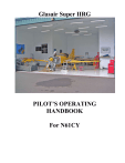 Glasair Super IIRG PILOT’S OPERATING HANDBOOK For N61CY Log of Revisions Page Number Revision All New Date Feb. 2007 No revisions at time of printing THINGS TO DO Proof read everything Update language for injected engines Update photo for rollout configuration Record rollout Wt. & Bal. Section 5 (W&B) belongs after 4.2, IMHO so I moved it there. Formula given in 4.3.2 is wrong, but don’t have the expertise to change it. Complete pre-flight check list Add A.O.A pre-flight checks, autopilot check, nav checks Expand emergency list 2 Table of Contents 1 GENERAL INFORMATION .........................................................................................................6 1.1 INTRODUCTION............................................................................................................................... 6 1.2 PILOT ABILITY ................................................................................................................................ 6 1.2.1 1.2.2 1.3 FAA REGULATIONS .................................................................................................................................... 6 IMPORTANT NOTICE .................................................................................................................................. 7 USE OF THE POH (PILOT OPERATING MANUAL) ................................................................. 7 1.3.1 1.3.2 REVISING THE MANUAL............................................................................................................................ 7 WARNINGS, CAUTIONS and NOTES ......................................................................................................... 8 1.4 AIRPLANE THREE VIEW DRAWING ......................................................................................... 9 1.5 SPECIFICATIONS........................................................................................................................... 10 1.6 SYMBOLS, ABBREVIATIONS and TERMINOLOGY .............................................................. 11 1.6.1 1.6.2 1.6.3 1.6.4 1.6.5 1.6.6 1.7 GENERAL AIRSPEED ................................................................................................................................. 11 SPEED TERMINOLOGY ............................................................................................................................. 11 METEOROLOGICAL TERMINOLOGY .................................................................................................... 11 POWER TERMINOLOGY ........................................................................................................................... 12 AIRCRAFT PERFORMANCE TERMINOLOGY ....................................................................................... 12 WEIGHT and BALANCE TERMINOLOGY ............................................................................................... 13 PERFORMANCE DATA (Estimated) ............................................................................................ 14 1.7.1 1.7.2 1.7.3 1.7.4 1.7.5 1.7.6 1.7.7 1.7.8 1.7.9 1.7.10 1.7.11 1.7.12 1.7.13 1.7.14 2 LIMITATIONS.............................................................................................................................................. 14 AIRSPEED INDICATOR MARKINGS ....................................................................................................... 14 POWER PLANT LIMITATIONS ................................................................................................................. 14 VACUUM PRESSURE LIMITS ................................................................................................................... 15 GROSS WEIGHT LIMITS ........................................................................................................................... 15 CENTER OF GRAVITY LIMITS................................................................................................................. 16 AEROBATIC LIMITATIONS ...................................................................................................................... 16 INTENTIONAL SPINS PROHIBITED ........................................................................................................ 17 FLIGHT IN ICING CONDITIONS ............................................................................................................... 17 FLIGHT IN THE VICINITY OF THUNDERSTORMS .......................................................................... 18 PRECAUTIONS CONCERNING SLIPS ................................................................................................. 18 REQUIRED EQUIPMENT ....................................................................................................................... 19 PLACARDS .............................................................................................................................................. 19 MINIMUM CONTROLLABLE AIRSPEED ........................................................................................... 20 Emergency Procedures .................................................................................................................21 2.1 INTRODUCTION............................................................................................................................. 21 2.2 FIRE ................................................................................................................................................... 21 2.2.1 2.2.2 2.2.3 2.2.4 2.3 2.3.1 2.3.2 2.3.3 2.3.4 2.4 2.4.1 2.5 ENGINE FIRE ............................................................................................................................................... 21 IN-FLIGHT FIRE .......................................................................................................................................... 21 GROUND FIRE..............................................