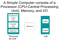 A Simple Computer consists of a Processor (CPU-Central Processing Unit), Memory, and I/O Arithmetic Logic Unit Control Unit Input Memory Registers Output Processor Or CPU I/O Basic Functional Units of a Computer • Input – accepts coded information from human operators, from electromechanical devices (such as keyboards), or from other digital medium via digital communication lines. • The information received is either stored in the memory or immediately used by the arithmetic and logic unit (ALU) to perform the desired operations. • The results are sent back out through the output medium. • All actions are coordinated through the control unit. The Information • Categorized as either instructions or data • Instructions (or machine instructions) are explicit commands that – Govern the transfer of information within a computer as well as between the computer and its I/O devices. – Specify the arithmetic and logic operations to be performed. Programs • A list of instructions that performs a task is called a program. • Usually the program is stored in memory. • The program fetches the instructions from memory, one after another, and performs the desired operations. • The computer is completely controlled by the stored program, except for possible interruption by an operator or by I/O devices connected to the machine. • Data are numbers and encoded characters that are used as operands by the instructions. Computer System Organization Inside the CPU • Control Unit (CU) coordinates the sequencing of steps involved in executing machine instructions • Arithmetic Logic Unit (ALU) performs arithmetic and logical operations • Registers storage locations • Clock synchronizes the internal operations of the CPU with the other system components Bus Structure • Bus - a group of parallel wires that transfer information from one part of the computer to another. – Control Bus synchronizes the actions of all of the devices attached to the system bus. – Address Bus passes the addresses of instructions and data between the CPU and memory (or I/O). – Data Bus transfers instructions and data between the CPU and memory (or I/O). Bus Sizes • For the 8086 Processor – Address Bus – 20 bits • can access 1M of memory • Addresses defined as $00000-$FFFFF – Data Bus – 16 bits (16-bit processor) • A word is 16 bits • Each word is byte addressable More Facts on The 8086 Processor Generation External Data Bus Width Internal Register Width Address Bus Width Numeric Data Processor L1 Cache L2 Cache P1 16 16 20 External None None The Intel CPU Family Chip 4004 8008 8080 8085 8086 8088 80286 80386 80486 Pentium Pentium Pro Pentium II Pentium III Date MHz 4/1971 0.108 4/1972 0.108 4/1974 2-3 4/1976 3-8 6/1978 5-10 6/1979 5-8 2/1982 8-12 10/1985 16-33 4/1989 25-100 3/1993 60-233 3/1995 150-200 5/1997 233-400 1998 550 Transistors Memory 2,300 3,500 6,000 6,500 29,000 29,000 134,000 275,000 1.2M 3.1M 5.5M 7.5M 9.5M 640 16KB 64KB 64KB 1MB 1MB 16MB 4GB 4GB 4GB 4GB 4GB Notes First microprocessor on a chip First 8-bit processor First general-purpose CPU on a chip First 16-bit CPU on a chip Used in IBM PC Memory protection present First 32-bit CPU Built-in 8K cache memory Two pipelines; later models had MMX Two levels of cache built in Pentium Pro plus MMX Streaming SIMD extensions (SSE) Notes from Intel Family Chart • Notice that 386 – Pentium 4 are 32-bit processors (32-bit data bus – 4 bytes) • Notice that 386 and beyond have 32-bit address bus can access (4G of memory addresses). Machine Cycle • Most basic unit of time for machine instructions • = the time required for one complete clock cycle. • Machine instructions require at least 1 clock cycle to execute. Most require more. • Wait states – empty clock cycles of machine execution time (due to memory access time being slower than speed of clock). Instruction Execution Cycle • If using Memory operand (mov ax, 0A69Bh) – Calculate address of operand – Place address of operand on address bus – Wait for memory to get operand and pass it on data bus The data path of a typical von Neumann Machine A+B A Registers B A B ALU Input Register ALU Input Bus ALU A+B ALU Output Register Instruction Execution Cycle The CPU executes each instruction in a series of small steps 1. Fetch the next instruction from memory into the instruction register. 2. Change the program counter to point to the next instruction. 3. Decode the instruction. 4. Fetch any memory operands necessary into a CPU register. 5. Execute the instruction. 6. Store output operand into a CPU register. Execution of von Neumann Machines To fetch the next instruction while the first is executing would speed up the machine Instructions are stored in prefetch buffers (registers), to be accessed more quickly than waiting for fetch from memory. Prefetching divides instruction execution up into two parts: fetching and actual execution. Pipelining divides up instruction execution into many parts, each one handled by a piece of dedicated hardware, all which can run in parallel. 2-stage Pipelining • Execution Unit: executes the microcode instructions. • Bus Interface Unit: accesses memory and provides I/O A Five-stage Pipeline S1 S2 S3 S4 S5 Code Prefetch Unit Instruction Decode Unit Operand Fetch Unit Instruction Execution Unit Write Back Unit A five-stage pipeline. S1 S2 S3 S4 S5 1 2 1 3 2 1 4 3 2 1 5 4 3 2 1 6 5 4 3 2 7 6 5 4 3 8 7 6 5 4 9 8 7 6 5 t1 t2 t3 t4 t5 t6 t7 t8 t9 The state of each stage as a function of time. How Fast Does This Machine Run? • Suppose that the cycle time of this machine is 2 nsec. • Then it takes 10nsec for an instruction to progress all the way through the five-stage pipeline. • Does the machine run at 100MIPS (1/10n)? • No, at every clock cycle (2nsec) a new instruction is completed, so the actual rate of processing is 500MIPS. How many cycles are required to execute n instructions? (Pipelined Versus Non-Pipelined 