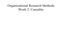 Organizational Research Methods Week 2: Causality What Do We Mean By Causality? • Relationship between two events where one is a consequence of the other • Determinism: A (cause) leads to B (effect) • “In the strict formulation of the law of causality—if we know the present, we can calculate the future—it is not the conclusion that is wrong but the premise”. On an implication of the uncertainty principle. Werner Heisenberg Heisenberg & Uncertainty Principle • Certain properties of subatomic particles are linked so the more accurately you know one, the less accurately you know the other – We can compute probabilities not certainties – Argues against determinism • “Physics should only describe the correlation of observations; there is no real world with causality” Heisenberg, 1927, Zeitschrift für Physik – Psychology, like quantum physics, is probabalistic Cause Versus Effect • Effect of a Cause (Description) – What follows a cause? • Cause of an Effect (Explanation) – Why did the effect happen? • Do bacteria “cause” disease? – Actually toxins cause disease – Actually certain chemical reactions are cause Holland, P. W. (1988). Causal inference, path analysis, and recursive structural equations models. Sociological Methodology, 18, 449-484. Three Elements of Causal Case • Cause and effect are related • Cause preceded effect • No plausible alternative explanations • John Stuart Mill Experiment • Vary something to discover effects – Shows association – Shows time sequence – Can rule out only some alternatives • Confounds • Boundary conditions (generalizability) • Good for causal description not explanation • Natural science control through precise measurement – Sterile test tubes, electronic instruments Encouragement Design • Manipulation of instructions/messages • Subjects “encouraged” to do certain things • Subjects self-select level of condition Holland, P. W. (1988). Causal inference, path analysis, and recursive structural equations models. Sociological Methodology, 18, 449-484. Studying and Performance • Students randomly assigned to study amount • Test scores as DV • Did studying lead to test results? – Encouragement led to test results – Impact on studying unclear – Effect of studying unclear • What was cause of test results? Holland, P. W. (1988). Causal inference, path analysis, and recursive structural equations models. Sociological Methodology, 18, 449-484. Nonexperimental Research Strategy 1. Determine covariation 2. Test for time sequence • • Longitudinal design Quasi-experiment 3. Rule out plausible alternatives • • Based on data/theory Logical Inus Condition • Multiple causes/mechanisms for a phenomenon – – – – The same thing can occur for different reasons Sufficient but unnecessary conditions Multiple motives People do things for different reasons • Are social phenomena a hierarchy of inus conditions? • Should we expect strong relationships between variables if inus conditions exist? Inus Conditions For Turnover • • • • • • • • Better job offer Bullying Disability Dissatisfaction Poor skill-job match Pursue other interests (e.g., Olympics) Spouse transfer Strategic reasons: Part of plan Confirmation/Falsification • Observation used to – Confirm/support theories – Falsify/disconfirm theories • Confirmation: All swans are white – Must observe all swans in existence • Falsification: One black swan – Easier to falsify than confirm – Null hypothesis testing disconfirmation – Based on construct validity • Poor measure might falsely falsify Scientific Skepticism • Science not completely based on objective reality • Observations based on theory of construct • Construct validity is theoretical interpretation of what numbers represent • Theories could be wrong: Biased measurement – NA as bias (Watson, Pennebaker, Folger) – Social constructions (Salancik & Pfeffer) • Science based on trust of methods: Faith – Experiments – SEM – Statistical control (Meehl) Shadish et al. Skepticisms (p. 30) • “…scientists tend to notice evidence that confirms their preferred hypotheses and to overlook contradictory evidence.” • “They make routine cognitive errors of judgment” • The react to peer pressures to agree with accepted dogma” • They are partly motivated by sociological and economic rewards” Meehl 1971: High School Yearbooks • What is Meehl’s issue with Schwarz and common practice? • Schwarz approach – Control SES because it relates to schizophrenia and social participation – Does not consider plausible alternatives • Schwarz accepts without skepticism (Shadish) • Meehl no Automatic Inference Machine Automatic Inference Machine • • • • • • • • Idea that statistics can provide tests for causation There is no such thing as a “causal test” There is no such thing as a “test” for mediation Statistical controls do not provide the “true” relationship between variables Statistics are only numbers: They don’t know where they came from Inference is in the design Inference is in the mind: Logical reasoning Write “There is no automatic inference machine” (Apologies to The Matrix) Meehl 1971: High School Yearbooks • What is Meehl’s issue with Schwarz and common practice? • Schwarz approach – Control SES because it relates to schizophrenia and social participation – Does not consider plausible alternatives • Schwarz accepts without skepticism (Shadish) • Meehl no Automatic Inference Machine • Meehl Commonest Methodological Vice in Social Science Research Commonest Methodological Vice • What is the commonest methodological vice? • Assuming certain variables are fixed and therefore must be causal – SES – Demographics – Personality • But these variables can’t be effects. • Can they? Can Job Satisfaction Cause Gender? • Correlation of Gen