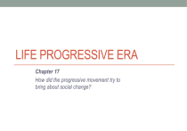 LIFE PROGRESSIVE ERA