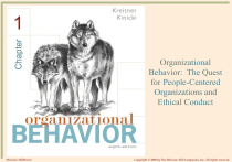 Chapter 1 McGraw-Hill/Irwin Organizational Behavior: The Quest for People-Centered Organizations and Ethical Conduct Copyright © 2008 by The McGraw-Hill Companies, Inc. All rights reserved. © 2008The Ch. 1 Learning Objectives 1. Define the term organizational behavior and contrast McGregor's Theory X and Y assumptions about employees 2. Identify the four principles of total quality management 3. Define the term e-business and specify OB-related issues raised by e-leadership 4. Contrast human and social capital and explain why we need to build both 5. Define management and identify managerial skills of 1-2 effective managers © 2008 The McGraw-Hill Companies, Inc. All rights reserved. Ch. 1 Learning Objectives (con’t) 6. Characterize 21st century managers 7. Describe Carroll’s global corporate social responsibility pyramid, and give an overview of the model of individual ethical behavior 8. Identify four of the seven general ethical principles, and explain how to improve an organization’s ethical climate 9. Describe the sources of organizational behavior research evidence 1-3 © 2008 The McGraw-Hill Companies, Inc. All rights reserved. Your Experience Do you feel that you have worked in a people-centered workplace? •A=Yes, B=No If yes, what people-centered characteristics did the workplace have? If no, what were the workplace characteristics that did not make it people-centered? 1-4 © 2008 The McGraw-Hill Companies, Inc. All rights reserved. What is Organizational Behavior? An interdisciplinary field dedicated to better understanding and managing people at work Why study OB? • To interact more effectively with others in organizations I’m a finance major, why do I need to know this? • People skills complement technical skills 1-5 © 2008 The McGraw-Hill Companies, Inc. All rights reserved. History of Organizational Behavior Human Relations Movement The Quality Movement E-Business Revolution Human and Social Capital 1-6 © 2008 The McGraw-Hill Companies, Inc. All rights reserved. Human Relations Movement Inspired by legalization of unionmanagement collective bargaining in the US (1935) Hawthorne Studies •Supportive management Mayo and Follett •“Pull” don’t “push” 1-7 © 2008 The McGraw-Hill Companies, Inc. All rights reserved. Test Your Knowledge What percentage of the American workforce do NOT utilize their full capabilities on the job? A. 10% B. 35% C. 50% D. 75% 1-8 © 2008 The McGraw-Hill Companies, Inc. All rights reserved. McGregor’s Theory X & Theory Y Theory X • Most people dislike work and want to avoid it • People require close direction • People want to avoid responsibility and have little ambition Table 1-1 Theory Y • Work is a natural activity • People can be selfdirected if they are committed to the objective • Rewards help commitment • Most employees accept and seek responsibility • Employees have imagination, ingenuity and creativity 1-9 © 2008 The McGraw-Hill Companies, Inc. All rights reserved. The Quality Movement Total Quality Management (TQM) • An organizational culture dedicated to training, continuous improvement, and customer satisfaction Employee-driven, customer-focused Basic Principles • Do it right the first time to eliminate costly rework • Listen to and learn from customers and employees • Make continuous improvement an everyday matter • Build teamwork, trust, and mutual respect 1-10 © 2008 The McGraw-Hill Companies, Inc. All rights reserved. E-Business Revolution E-Business – running the entire business via the internet Implications for organizational behavior and leaders? •More and faster communication with others •More potential for damage by unethical leaders •Enables the existence of networks that go across traditional organizational boundaries 1-11 © 2008 The McGraw-Hill Companies, Inc. All rights reserved. Human and Social Capital Human Capital the productive potential of an individual’s knowledge and actions Social Capital productive potential resulting from strong relationships, goodwill, trust, and cooperative effort Mitre, McLean, VA • Pays university professors to conduct a Master’s in Systems Engineering program for employees Cisco Systems, San Jose, CA • Sponsors “Nerd lunches” to discuss latest topics in technology 1-12 © 2008 The McGraw-Hill Companies, Inc. All rights reserved. Management Process of working with and through others to achieve organizational objectives efficiently and ethically What skills are exhibited by an effective manager? 21st Century managers have to play chess, not checkers 1-13 © 2008 The McGraw-Hill Companies, Inc. All rights reserved. Test Your Knowledge True (A) or False (B)? 1. Effective managers tend to have high skills mastery. 2. Derailed managers underestimate their skills mastery. 3. Effective female and male managers have significantly different skill sets. 1-14 © 2008 The McGraw-Hill Companies, Inc. All rights reserved. Evolution of 21st-Century Managers Primary Role Past Managers Future Managers Cultural Orientation Monocultural, monolingual Multicultural, multilingual Source of influence Formal authority Technical knowledge and interpersonal skill View of people Potential problem Primary resource; human capital Decision-making style Limited input for individual decisions Broad-based input for joint decisions Ethical considerations Afterthought Forethought 1-15 © 2008 The McGraw-Hill Companies, Inc. All rights reserved. The Ethics Challenge “In the Post Enron, post-bubble world, there’s a yearning for corporate values that reach higher than the size of the CEO’s paycheck or even the latest stock price. Trust, integrity and fairness do matter, and they are crucial to the bottom line.” Source: Excerpt from J A Byrne, “After Enron: The Ideal Corporation,” Business Week, August 26, 2002, p. 68 1-16 © 2008 The McGraw-Hill Companies, Inc. All rights reserved. A Model of Ethical Behavior in the Workplace • Internal Or