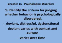 Chapter 15 –Psychological Disorders