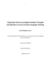 1 Using Pupil Voice to Investigate Students’ Thoughts and Opinions on Cross-Curricular Language Teaching. By Christopher Jarvis. A thesis submitted in partial fulfilment of the requirements for the degree: Doctor in Education. University of Sheffield. School of Education. September 2012 2 I wish to extend my deepest thanks to the following people that have helped me throughout the thesis process: Dr. Terry Lamb for his support, advice, and always useful feedback My fellow students on the EdD programme for all of the good memories The students who participated in the research for their insight and honesty Keira Borrill for her help in proof reading this thesis Itxaso for her love, support, patience, and understanding when potential holidays had to be side lined in favour of extended periods of time in the University’s libraries. 3 Table of Contents Acknowledgements P. 2 Table of Contents P. 3 Abstract P. 7 Chapter 1 Introduction P. 8 1.1 Introduction P. 8 1.2 Summary P. 10 1.3 Additional Note P. 10 Framing the Research P. 11 2.1 Boundaries of the Research P. 11 2.2 Formulating Research Questions P. 13 2.3 Ontology P. 15 2.4 Summary P. 17 Literature Review P. 18 3.1 Pupil Voice P. 21 3.1.1 An Overview of Pupil Voice P. 21 3.1.2 Pupil Voice and Improving Learning P. 22 3.1.3 (Meta)cognition P. 23 3.1.4 Metacognition and Pupil Voice in Language Learning P. 24 3.1.5 Issues Surrounding the Implementation of Pupil Voice P. 25 3.1.6 Moving Towards a More Transformative Future P. 27 3.2 Cross-Curricular Teaching P. 29 3.2.1 The National Curriculum P. 29 3.2.2 Cross-Curricular Language Teaching Through Collaboration P. 32 3.2.3 Barriers to Cross-Curricular Language Teaching P. 33 3.2.4 The Andragogical Approach P. 34 3.3 Student Language Learning Motivation P. 36 Chapter 2 Chapter 3 4 3.3.1 The Socio-educational Model P. 36 3.3.2 Self-determination Theory P. 38 3.3.3 Overlaps between the Socio-educational Model and Self-determination Theory p. 40 3.3.4 Goal Theories p. 42 3.3.5 Dörnyei’s Motivational Framework P. 44 3.3.6 The Problems of Motivating Years 8 and 9 P. 45 3.4 Summary: Responding to the Literature Review P. 48 3.4.1 Pupil Voice P. 48 3.4.2 Cross-Curricular Language Teaching P. 49 3.4.3 Student Language Learning Motivation P. 50 Methods and Methodology P. 52 4.1 Interviews in Educational Research P. 52 4.2 Epistemology and Qualitative Interviews P. 54 4.3 Types of Interviews in Educational Research P. 56 4.4 Reasons for Using the Semi-Structured Interview P. 57 4.5 Using Semi-Structured Group Interviews to Collect Data P. 58 4.6 Being an Insider in the Research Process P. 60 4.7 Issues Surrounding Reliability and Validity P. 62 4.7.1 Validity P. 62 4.7.2 Reliability P. 64 4.8 Summary: Ethical Considerations P. 67 The Research Process P. 70 5.1 The Sample P. 70 5.2 The Interview P. 71 5.2.1 Subsidiary Research Question 1 and Corresponding Interview Questions P. 71 5.2.2 Subsidiary Research Question 2 and Corresponding Interview Questions P. 73 Chapter 4 Chapter 5 5 5.2.3 Subsidiary Research Question 3 and Corresponding Interview Questions P. 74 5.3 Approach to Data Analysis P. 76 5.4 Approach to Transcript Analysis P. 78 5.5 Summary P. 82 Data Analysis P. 83 6.1 Analysis of Subsidiary Research Question 1 P. 85 6.1.1 The Impact of Curriculum Subjects Outside the Walls of their Classroom P. 86 6.1.2 The Existing Cross-Curricular Opportunities within the School P. 89 6.1.3 The Failure of Previous Cross-Curricular Language Projects P. 99 6.1.4 Differences in Group Responses P. 100 6.1.5 Summary P. 101 6.2 Analysis of Subsidiary Research Question 2 P. 103 6.2.1 The Positive Points of Language Teaching within the School P. 104 6.2.2 The Negative Points of Language Teaching within the School P. 109 6.2.3 The Ability to Speak the Language P. 114 6.2.4 The Effects of the G.C.S.E Language Examinations and How these Influence the Topics Students Want to Study as Part of Any Such Cross-Curricular Language Collaborations. P. 117 6.2.5 Differences in Group Responses P. 122 6.2.6 Summary P. 123 6.2.7 Additional Note P. 124 6.3 Analysis of Subsidiary Research Question 3 P. 125 6.3.1 How Students Believed Cross-Curricular Language Projects Should be Conducted P. 125 6.3.2 Example Projects that Students Want to Study P. 131 Chapter 6 6.3.2.1 Example Project 1 P. 132 6.3.2.2 Example Project 2 P. 135 6.3.2.3 Example Project 3 P. 137 6.3.2.4 Example Project 4 P. 139 6 6.3.2.5 Example Project 5 P. 141 6.3.2.6 Example Project 6 P. 143 6.4 Differences in Group Responses P. 147 6.5 Summary P. 148 6.6 Chapter Summary P. 149 6.6.1 The Higher Attaining Group P. 149 6.6.2 The Middle Attaining Group P. 151 6.6.3 The Lower Attaining Group P. 152 Reflections on the Research Process P. 154 7.1 Reflections on the Interviews P. 154 7.2 Reflections on Pupil Voice P. 156 7.3 Reflections on the Lower Attaining Group P. 159 7.4 Reflections on the Cross-Curricular Examples Provided by Students P. 160 7.5 Reflections on Being an Insider Researcher P. 160 7.6 Reflections on Validity P. 163 7.7 Summary P. 164 Conclusions P. 166 8.1 Addressing the Primary Research Question P. 166 8.2 Recommendations for School and Policy Makers P. 172 8.3 Areas for Future Research P. 175 8.4 Contribution to Knowledge P. 176 8.5 Contribution to the Researcher P. 176 Chapter 7 Chapter 8 References P. 178 Appendices P. 191 Appendix A Participant Consent Form P. 191 Appendix B University Consent Form P. 192 7 Abstract The aim of this thesis is as follows: To investigate students’ thoughts and opinions on cross-curricular language teaching. This thesis arose from the context of my own work as a languages teacher in an inner-city comprehensive secondary school, and the fact that I wanted to conduct a piece of research that could inform my own, and potentially others’ teaching practices. In order to investigate such a topic the literature surrounding the concepts of pupil voice, cross-curricular teaching, and student language learning motivati