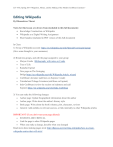 LIT 4192, Spring 2014 “Migration, Money, and the Making of the Modern Caribbean Literature” Editing Wikipedia By Dhanashree Thorat Notes for this lesson are drawn from (included in this full document): Knowledge Construction on Wikipedia Wikipedia as a Digital Writing Assignment Short handout (included in PDF version of this full document) In Class: 1) Set up a Wikipedia account: https://en.wikipedia.org/wiki/Special:UserLogin/signup (Give some thought to your username) 2) Break into groups, and edit the page assigned to your group Maryse Conde Bibliography with notes on Conde Tree of Life Ramabai Espinet New page on The Swinging Bridge https://en.wikipedia.org/wiki/Wikipedia:Article_wizard Caribbean Literature (add lines on Espinet, Conde) Trinidad and Tobago Literature (add lines on Espinet) Indo-Caribbean (review the section on indenture and add Espinet) https://en.wikipedia.org/wiki/Indo-Caribbean 3) You can make the following changes: Author page: Update biographical information about the author Author page: Write about the author's literary style Book page: Write about the book's themes, plot, characters, reviews General: Add outlinks to relevant sources, or link internally to other Wikipedia articles IMPORTANT (if you don't want your page deleted) SOURCES ARE CRITICAL Link the page to other Wikipedia pages When you make a change, describe what you changed Read more about making pages stick: http://dhpoco.org/rewriting-wikipedia/how-to-createwikipedia-entries-that-will-stick/ LIT 4192, Spring 2014 “Migration, Money, and the Making of the Modern Caribbean Literature” Knowledge Construction on Wikipedia: Part I Originally published: http://www.dthorat.com/wikiknow/ A pedagogy for the digital age must engage students in a critical study of the new media technologies that they use in their everyday lives. Students should be able to situate digital tools within institutional structures of power, and question the epistemology that informs and emerges from them. This post will focus on Wikipedia, and suggest some approaches to Wikipedia from a critical digital pedagogy perspective. According to Alexa, the web analytics company, Wikipedia currently ranks 6th in the top visited sites globally according to Alexa. Many of us use Wikipedia at least as a first source for basic information before we turn to other sources, and as an instructor, I know that my students first turn to Google (ranked 1st in the Alexa list) and Wikipedia when they have to research a topic. While these trends are unsurprising, it is important that we prepare our students on using these tools in a critical manner. The four points I outline below can be developed into a lesson plan for a research based English Composition class or in more specialized New Media class. (These points can also be used to contextualize a digital assignment based on Wikipedia. I will write more about this in Part II of this post.) I understand that it may not be possible to cover all these points in a lesson on research and sources, but I want to include entry points to a larger conversation which situates Wikipedia, and other forms of new media, within an institutional structure of power and hegemony. Generally, when instructors talk about Wikipedia in the classroom, the discussion revolves around two issues: 1) Wikipedia is unreliable because it is not a scholarly, peer reviewed source Most students already know this, but use Wikipedia nonetheless because it is updated faster than other encyclopedias. While it may be a simplification that all Wikipedia articles are unreliable, it is important for students to realize that knowledge on Wikipedia is constructed, and Wikipedia articles grapple with objectivity and bias. In other words, students must evaluate the objectivity of the article. (One commonly prescribed way to do this is by looking at the citations.) To augment this discussion, and better understand how this construction occurs, I suggest that students refer to the history of edits made to the article. LIT 4192, Spring 2014 “Migration, Money, and the Making of the Modern Caribbean Literature” View History is a public record of changes made to the article by writers/editors and reasons for these changes. Frequently, this page also documents the acrimonious debate sparked by a controversial change. For example, here is a series of edits and “reverts” related to Obama’s heritage: This page places the latest developments at the top, so reading from bottom to top lets us trace a discussion going on between writers and moderators. Occasionally, the debate may be conducted on the Talk page (to the right of Article, at the top of the page), where writers can offer lengthier explanations for their proposed changed. As this short section indicates, the Wikipedia community of editors and writers reviews changes very quickly and the debate over changes can range from definitions and sources to importance and bias. By reviewing this page, students can get a sense of how actively a specific page is watched by the community. 2) Wikipedia is not considered a credible source in the academic/professional community This is an important point that students often miss. Even if an article has been stringently reviewed by the community, it is not considered a scholarly and peer reviewed source in the LIT 4192, Spring 2014 “Migration, Money, and the Making of the Modern Caribbean Literature” academic community. (This is a good place to talk to students about journal articles and other academic publications but I don’t want to cover that in depth in this post.) While these two points are important, I want to add two additional points that students should be aware about. 3) Lack of diversity and representation in Wikipedia’s writing community and coverage A 2011 internal Editor Survey found some glaring issues: 76% of editors make edits to English Wikipedia. This indicates linguistic privilege, but also raises larger questions about w