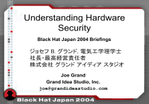 Understanding Hardware Security Black Hat Japan 2004 Briefings Joe Grand Grand Idea Studio, Inc. joe@grandideastudio.com Goals • Learn the concepts of designing secure hardware • Become familiar with types of attacks and attackers General Security Concepts • Nothing is ever 100% secure – Given enough time, resources, and motivation, an attacker can break any system • Secure your product against a specific threat – What needs to be protected – Why it is being protected – Who you are protecting against (define the enemy) General Security Concepts 2 Security During Product Development • Establish a security policy as the "foundation" for design • Treat security as an integral part of your product's development • Minimize the elements you need to secure • Reduce risk to an acceptable level – Elimination of all risk is not cost-effective Security During Product Development 2 • Implement layered security • Do not implement unnecessary security mechanisms – Each mechanism should support a defined goal • Costs of a successful attack should outweigh potential rewards Types of Attack • Insider Attack – Significant percentage of breaches – Ex.: Run-on fraud, disgruntled employees • Lunchtime Attack – Take place during a small window of opportunity – Ex.: During a lunch or coffee break • Focused Attack – Time, money, and resources not an issue Types of Attackers • Clever Outsiders – Intelligent, but have limited knowledge of the product – Usually take advantage of a known weakness – Ex.: Curious kids, college students • Knowledgeable Insiders – Substantial specialized technical experience – Highly sophisticated tools and instruments – Ex.: Professional engineers Types of Attackers 2 • Funded Organizations – Specialists backed by great funding resources – In-depth analysis, sophisticated attacks, most advanced analysis tools – Ex.: Government, organized crime Accessing the Product • Purchase – Attacker buys the product from a retail store • Evaluation – Attacker rents or borrows the product • Active – Product is in operation, not owned by attacker • Remote Access – No physical access to product – Attacks launched remotely Threat Vectors • Interception (or Eavesdropping) – Gain access to information without opening the product • Interruption (or Fault Generation) – Preventing the product from functioning normally • Modification – Invasive tampering of the product • Fabrication – Creating counterfeit data in a product Goals of an Attack • Competition (or Cloning) – Specific theft to gain marketplace advantage • Theft-of-Service – Obtaining a service for free that normally costs money • User Authentication (or Spoofing) – Forging a user's identity to gain system access • Privilege Escalation (or Feature Unlocking) – Gaining increased command of a system or unlocking hidden/undocumented features Anti-Tamper Mechanisms • Primary area of physical security for embedded systems • Attempts to prevent unauthorized physical or electronic tampering against the product • Most effectively used in layers • Possibly bypassed with knowledge of method – Attackers may intentionally destroy a device to determine its security mechanisms Anti-Tamper Mechanisms 2 • Tamper Resistance – Specialized materials used to make tampering difficult – Ex.: One-way screws, epoxy encapsulation • Tamper Evidence – Ensure that there is visible evidence left behind by tampering – Only successful if a process is in place to check for deformity – Ex.: Passive detectors (seals, tapes, glues), special enclosure finishes ("bleeding paint") Anti-Tamper Mechanisms 3 • Tamper Detection – Enable the hardware device to be aware of tampering – Switches: Detect the opening of a device or breach of security boundary – Sensors: Detect an operational or environmental change (ex.: temperature, voltage, radiation) – Circuitry: Detect a puncture, break, or attempted modification of a defined security envelope (ex.: nichrome wire, W.L. Gore's D3 enclosure) Anti-Tamper Mechanisms 4 • Tamper Response – Countermeasures taken upon the detection of tampering – Ex.: Erase memory, shutdown/disable device, enable logging • Physical Security Devices for Computer Subsystems [1] provides comprehensive attacks and countermeasures Enclosure & Mechanical • Product Housing • External Interfaces Product Housing • Attack goal of opening the product is to get access to internal circuitry • Usually as easy as loosening some screws or prying open the device • Designers should prevent easy access to product internals Product Housing 2 Product Housing 3 • Sealed or molded housing – Use a high-melting point glue – Use ultrasonic welding to create a one-piece outer shell – Will require destruction of device to open it – Consider service issues (if a legitimate user can open device, so can attacker) Product Housing 4 • Security bits and one-way screws – Prevents housing from being easily opened – Ex.: 3.8mm, 4.5mm, and Tri-Wing screw for Nintendo and Sega cartridges/consoles – Beware: Attackers can purchase many of these special bits online External Interfaces • Usually connects a product to the outside world – Manufacturing tests, field programming/upgrading, peripheral connections – Ex.: RS232, USB, Firewire, Ethernet, JTAG (IEEE 1149.1) External Interfaces 2 • Will likely be probed or monitored by attacker • Only publicly known information should be passed • Encrypt secret or critical components – If they must be sent at all... – Ex.: Palm OS system password decoding attack [2] External Interfaces 3 • Don't just hide the interface – Will easily be discovered by an attacker – Ex.: Proprietary connector types, hidden access doors or holes, stickers • Protect against malformed, bad packets – Intentionally sent by attacker to cause fault External Interfaces 4 • Phy