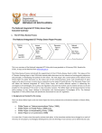 The National Integrated ICT Policy Green Paper Executive Summary 1. The ICT Policy Review Process The National Integrated ICT Policy Green Paper Process Framing Paper Gazetted April 2013 National Integrated ICT Policy Green Paper Discussion Paper to follow Gazetted January 2014 National Integrated ICT Policy White Paper To be Gazetted December 2013 This is an overview of the National Integrated ICT Policy which was gazetted on 24 January 2014, Gazette No. 37261. A copy can be obtained from www.doc.gov.za The Policy Review Process started with the appointment of the ICT Policy Review Panel in 2012. The release of the ICT Review Framing Paper in April 2014 kick-started public discussions on the relevance of existing policy objectives and principles, in developing new policies for the sector. The next stage is the current phase of the release of the Green Paper for public discussion on the status quo of the communications sector and consideration of what needs to be done to ensure a sector that is responsive to the needs of South Africans. The Discussion Paper, that will follow the National Integrated ICT Policy Green Paper, will outline different options in addressing the convergence of technologies and a policy and regulatory structure that will be used to extend services to all and provide for the opening of the sector to new innovative services. The White Paper will be Government’s formal policy position on key issues relating to Information and Communications Technologies (ICTs). The National Integrated ICT Policy White Paper will provide the framework for new ICT legislation. 2. Background and Context for the review There are three White Papers and one Green Paper that were produced since the democratisation of South Africa, namely: White Paper on Telecommunications Policy (1996); White Paper on Postal Policy (1998) and; White Paper on Broadcasting Policy (1998). Green Paper on e-Commerce (1999) It is more than 15 years since these policy reviews took place. In the meantime markets have changed as a result of the entry of new players, technological developments and new thinking in how services can be delivered and used. Previously, the three sectors were regulated as silo sectors of telecommunications, broadcasting and postal services. Convergence of technologies has since blurred the boundaries between the sectors. The same infrastructure can be used to deliver voice, video and data. Different services can now be received using the same end-user devices. Interestingly, the policies had predicted that there would be a need for a review to accommodate the effects of convergence and to facilitate the widespread use of new innovative services. The review process also considers whether the objectives outlined in the existing policies are still relevant. Some of the questions to be answered by the process are: Did the original objectives or goals and regulatory frameworks address all the needs? Are the objectives or goals still relevant, given changes in society in the past 15 years and considering technological advancements that have taken place? 2.1 Drivers of change in the ICT sector There have been a lot of changes in recent years due to the rapid expansion and fast-paced developments in technology and the emergence of new media as a result of the Internet. Both homes and offices have been transformed. The tools and machines used barely 20 years ago, such as Telex machines, floppy disc computers, tape cassettes and colourless computers devoid of graphics and of course without a mouse are no longer in use. With the entry of broadband in the past 10 years, the ICT landscape has changed dramatically and the Internet is now a major medium of communication. The SA population has grown from 37.8 million to 51.7 million between 1993 and 2012 and in that time households numbers increased by 4.6 million to 14.5 million. These are consumers of services that must be reached, which will require the extension of infrastructure. Statistics show a correlation between access to services (like fixed line broadband and computers) and high annual income. Breaking these figures down into households, Indian and White households have access to the greatest number of ICT goods and services. Interestingly, mobile phone access across population and income groups is high. Mobile technology, broadband, digital television, smartphones, the cloud, tablets, and new media technology are all recent developments in the market. These changes have serious implications for policies and legislation that were written prior to these developments, and need to be adequately reflected in current policy and legislation. Further disruptive technological changes are on the horizon and these must also be considered in developing flexible policies that respond to technological changes. One of the core considerations is the changing use of ICTs and the role these technologies play as enablers in the different spheres of human endeavour. Over the past three decades the world has accepted the transformative power of ICTs. The implementation of different strategies to diffuse the availability of these technologies has transformed countries, societies and activities of individuals. The International Telecommunication Union (ITU) estimates that a 10% increase in broadband penetration will result in an increase of up to 1.38% in the Gross Domestic Product (GDP). This will create jobs. The implementation of e-government, ecommerce and online transactions will improve service delivery and open new avenues for the end-user equipment manufacturing sector. Therefore, a coordinated roll-out of ICTs promises a realistic opportunity to bridge the digital divide and help deal with the inequalities and unequal access to services in the country. Best practice in the fast moving technological revolution that we are experiencing globally, is to consider doing regular policy reviews, ideally at least every 5years to make sure that the objectives outl