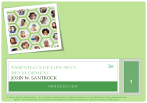 ESSENTIALS OF LIFE-SPAN DEVELOPMENT 3e JOHN W. SANTROCK INTRODUCTION © 2014 by McGraw-Hill Education. This is proprietary material solely for authorized instructor use. Not authorized for sale or distribution in any manner. This document may not be copied, scanned, duplicated, forwarded, distributed, or posted on a website, in whole or part. 1 CHAPTER OUTLINE • • • • The life-span perspective The nature of development Theories of development Research in life-span development © 2014 by McGraw-Hill Education. This is proprietary material solely for authorized instructor use. Not authorized for sale or distribution in any manner. This document may not be copied, scanned, duplicated, forwarded, distributed, or posted on a website, in whole or part. 1-2 THE LIFE-SPAN PERSPECTIVE • The importance of studying life-span development • Characteristics of the life-span perspective • Contemporary concerns in life-span development © 2014 by McGraw-Hill Education. This is proprietary material solely for authorized instructor use. Not authorized for sale or distribution in any manner. This document may not be copied, scanned, duplicated, forwarded, distributed, or posted on a website, in whole or part. 1-3 THE LIFE-SPAN PERSPECTIVE • Development: Pattern of movement or change that begins at conception and continues through the human life span • The importance of studying life-span development • Prepares us to take responsibility for children • Gives us insight about our own lives © 2014 by McGraw-Hill Education. This is proprietary material solely for authorized instructor use. Not authorized for sale or distribution in any manner. This document may not be copied, scanned, duplicated, forwarded, distributed, or posted on a website, in whole or part. 1-4 THE LIFE-SPAN PERSPECTIVE • Characteristics of the life-span perspective • Life-span perspective: Views development as • • • • • • • Lifelong Multidimensional Multidirectional Plastic Multidisciplinary Contextual A process that involves growth, maintenance, and regulation of loss © 2014 by McGraw-Hill Education. This is proprietary material solely for authorized instructor use. Not authorized for sale or distribution in any manner. This document may not be copied, scanned, duplicated, forwarded, distributed, or posted on a website, in whole or part. 1-5 TYPES OF CONTEXTUAL INFLUENCES • Normative age-graded influences: Similar for individuals in a particular age group • Normative history-graded influences: Common to people of a particular generation because of historical circumstances • Nonnormative life events: Unusual occurrences that have a major impact on an individual’s life © 2014 by McGraw-Hill Education. This is proprietary material solely for authorized instructor use. Not authorized for sale or distribution in any manner. This document may not be copied, scanned, duplicated, forwarded, distributed, or posted on a website, in whole or part. 1-6 THE LIFE-SPAN PERSPECTIVE • Contemporary concerns in life-span development • Health and well-being • Parenting and education • Sociocultural contexts and diversity • Culture: Behavior patterns, beliefs, and all other products of a group that are passed on from generation to generation © 2014 by McGraw-Hill Education. This is proprietary material solely for authorized instructor use. Not authorized for sale or distribution in any manner. This document may not be copied, scanned, duplicated, forwarded, distributed, or posted on a website, in whole or part. 1-7 THE LIFE-SPAN PERSPECTIVE • Cross- cultural studies: Comparison of one culture with one or more other cultures • Ethnicity: Based on cultural heritage, nationality characteristics, race, religion, and language • Socioeconomic status: Grouping of people with similar occupational, educational, and economic characteristics • Gender: Characteristics of people as males or females • Social policy: National government’s course of action designed to promote the welfare of its citizens © 2014 by McGraw-Hill Education. This is proprietary material solely for authorized instructor use. Not authorized for sale or distribution in any manner. This document may not be copied, scanned, duplicated, forwarded, distributed, or posted on a website, in whole or part. 1-8 THE NATURE OF DEVELOPMENT • • • • Biological, cognitive, and socioemotional processes Periods of development Conceptions of age Developmental issues © 2014 by McGraw-Hill Education. This is proprietary material solely for authorized instructor use. Not authorized for sale or distribution in any manner. This document may not be copied, scanned, duplicated, forwarded, distributed, or posted on a website, in whole or part. 1-9 BIOLOGICAL, COGNITIVE, AND SOCIOEMOTIONAL PROCESSES Biological processes • Changes in an individual’s physical nature Cognitive processes • Changes in an individual’s thought, intelligence, and language Socioemotional processes • Changes in an individual’s relationships with other people, emotions, and personality © 2014 by McGraw-Hill Education. This is proprietary material solely for authorized instructor use. Not authorized for sale or distribution in any manner. This document may not be copied, scanned, duplicated, forwarded, distributed, or posted on a website, in whole or part. 1-10 BIOLOGICAL, COGNITIVE, AND SOCIOEMOTIONAL PROCESSES • Connecting biological, cognitive, and socioemotional processes • Connection is obvious in: • Developmental cognitive neuroscience - Explores links between development, cognitive processes, and the brain • Developmental social neuroscience - Examines connections between socioemotional processes, development, and the brain © 2014 by McGraw-Hill Education. This is proprietary material solely for authorized instructor use. Not authorized for sale or distribution in any manner. This document may not be copied, scanned, duplicated, forwarded, dist