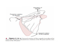 1 Elevation/Depression 2 Protraction/Retraction 3 Internal/external rotation 4 Anterior/posterior tiping 5 Static stabilization of the GH • Due to incongruence of the GH articular surfaces, the bony surfaces alone cannot maintain joint contact in dependent position (arm hanging at the side). • LOG pull the humeral head inferiorly it need an equal upward pull to stabilize, such an upward pull is could be supplied by muscles such as deltoid, supraspinatus, and long head of biceps but the EMG shows these muscle are electrically silent, thus the stabilization in this dependent position is passive, the superior capsule, SGHL, CH ligament, are taut during relaxed dependent position. The resultant pull of LOG and these structure create a force which compresses the head in Glenoid fossa • Healthy GH joint is seal by labrum and capsule, any translation produces a negative pressure that resist the inferior translation. Any tear in labrum thus results in 6 Static stabilization of the GH • Degree of Glenoid inclination also play a role in static stability , if there is upward inclination either structurally or by upward scapular rotation will resist more inferior translation of the humeral head. • If the arm is loaded then the passive restraints are inadequate to resist the translation then the supraspinatus is recruited because the supraspinatus is attached on the capsular structures, paralysis of the supraspinatus causes inferior subluxation of the humeral head due to sustained forces which causes the capsule to b e lax. 7 8 Dynamic stabilization of GH The deltoid and GH stabilization • Generally deltoid is considered as prime mover for flexion and abduction however the resultant action of the deltoid muscle is used in stabilization of the GH joint during elevation 9 The RC and GH stabilization • The supraspinatus, infraspinatus, teres minor, and subscapularis muscles compose the rotator or musculotendinous cuff (also referred to by the acronym SITS muscles) • These muscles are the GH joint compressor during elevation, these muscles and deltoid muscle make force couple 10 11 The supraspinatus and GH stabilization • Unlike other RC muscles the suprspinatus has a superior translatory component rather than inferior component that’s why can,t offset the superior translation of the deltiod. However the supraspinatus muscles rotatory component is larger than that of other RC muscles • The supraspinatus has a large moment arm that is capable of independently producing abduction full range of GH joint simultaneously stabilizing it • Gravity also paly in stabilizing by offsetting the upward pull of the supraspinatus and deltoid muscles 12 13 The long head of bicep and GH stabilization • The long head of the biceps brachii runs superiorly from the anterior shaft of the humerus through the bicipital groove between the greater and lesser tubercles to attach to the supraglenoid tubercle and superior labrum. It enters the GH joint capsule through an opening between the supraspinatus and subscapularis muscles, where it penetrates the capsule but not the synovium • The long head of the biceps brachii, because of its position at the superior capsule and its connections to structures of the rotator interval capsule to be part of the reinforcing cuff of the GH jointThe biceps muscle is capable of contributing to the force of flexion and can, if the humerus is laterally rotated, contribute to the force of abduction and anterior stabilization. 14 15 Pairing of Pec Girdle and Shoulder Joint Movements Shoulder Jt Shoulder Girdle Abduction Adduction Flexion Extension Upward rotation Downward rotation Elevation / upward rotation Depression / downward rotation Internal rotation External rotation Horizontal abduction Horizontal adduction Abduction Adduction Adduction Abduction (protraction) (retraction) (retraction) (protraction) 16 Orientation Muscles of the Pectoral Girdle • Muscles of the thorax that move the pectoral girdle – Anterior thoracic muscles – Posterior thoracic muscles • Muscles of the thorax that move the humerus. – Axial muscles that move the humerus – Scapular muscles that move the humerus. 17 Muscles of the Thorax Move the Pectoral Girdle Anterior thoracic muscles Posterior thoracic muscles • Subclavius • Fiber of trapezius • Pectoralis minor • Levator scapulae • Serratus anterior • Rhomboid minor • Rhomboid major 18 Muscles of the Thorax that Move the Humerus Axial muscles Scapular muscles • Pectoralis major • Fiber of deltoid • Latissumus dorsi • Rotator cuff • Teres major • Coracobrachalis • Long & short head of biceps • Long head of triceps 19 ORIGIN, INSERTION, ACTIONS AND NERVE SUPPLY 20 Subclavius Muscle • Origin – 1st rib • Insertion – lower surface of clavicle Subclavius • Action – Depression and move clavicle anteriorly – Helps stabilize pectoral girdle • Nerve supply – Subclavian nerve 21 Pectoralis Minor • Origin – 2nd - 5th ribs, 3rd – 5th ribs or 2nd – 4th ribs. • Insertion – Coracoid process of scapula • Action – Abduction scapula and rotates it downward – Elevate the ribs during forced inhalation. • Nerve supply – Medial pectoral nerve 22 Pectoralis Minor 23 Serratus Anterior • Origin – Superior 8 or 9 ribs • Insertion – vertebral border and inferior angle of scapula • Action – Abduction and rotates the scapula upward – Elevate ribs when scapula stabilized. – Also known as “boxer’s muscles” • Nerve supply – Long thoracic nerve 24 Fiber of Trapezius • Consists 3 fibers • Superior or upper fiber, middle fiber and inferior or lower fiber. • Important for move the scapula. • Nerve supply - accessory nerve and cervical spinal nerve. 25 Upper / Superior Fiber of Trapezius • Origin – medial one third of the superior nuchal line, external occipital protuberance and ligamentum nuchae. • Insertion – posterior border of the lateral one third of the cl