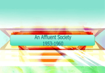 An Affluent Society 1953-1960 The Golden Age A Changing Economy • “Golden Age” of capitalism and “Family values”. Standard of living rose consistently from 1947-1973, and 60% of Americans called themselves” Middle Class” • Consumerism stronger than ever - begin to define ourselves by what we own. Greater acceptance of big government- even without a crisis, after 20 years it’s an expectation • Generally an era of conformity (which feels good after so many years of uncertainty) Establishes modern version of “family values” • The last decade of our industrial age- we begin shift towards a service based economy rather than manufacturing. Number of salaried (rather than hourly) workers rose by 60%- now you have a “career”, rather than a “job” A Suburban Nation • By 1960 America has 40% of the world’s wealth- and 6% of the world’s population • Housing boom- by 1955 60% of Americans own their own home (30% at turn of century) By 1960 25% of all homes in America less than 15 years old. Home ownership becomes strongly tied to “American Dream” • Levittown: most famous suburban development 10,000 homes on 1,200 acres priced for the “Average” family Sunbelt vs Frostbelt Air-conditioning invented in 1920s, but becomes cost effective and popular in 1950s…. Begins population booms in the SW (CA has largest pop in nation by 1963) Changes demography. Cold War (Military) spending a big part of this- West builds aircraft, missiles and radar, South has large numbers of military bases and builds ships.Northeast does submarines- but for 1st time they are losing population The Growth of the West • Cities that grew in the 50s were different from the eastern centers of gilded age America. Rather than a large downtown- cities like LA, Phoenix, and Houston were “decentralized” – clusters of suburban neighborhoods linked by highways rather than public transportation • Life centered around the car- people drove to/from work, did shopping at malls/plazas. 1/3 of California was covered with pavement, and grass becomes the most “cultivated” crop in US Consumer Culture • “The luxuries of today are the necessities of tomorrow” (Macys) Never before had products been more available, and a booming economy mean more and more people were involved- and freedom became about choices. • Consumerism replaced economic independence as the goal of Americans. Attitudes towards debt continued to change- credit cards become common • And it is a weapon in the cold war- an indicator that we are “winning” if our standard of living is higher. The TV World • An important agent of conformity etc… came into homes and showed an “idealized”,, but seemingly attainable, lifestyle. Squeaky clean, white, and WASPy. (some variations, like I love Lucy, which featured a multi-ethnic family) • By the end of the 50s, 90% of Americans have a TV and NBC, CBS and ABD (soon to be C) are thriving networks. • Advertising drives consumerism A New Ford • Had become important during the 20s- but really help define the culture of the 50s. By 1960 80% of Americans have a car (but only 14% have more than 1) • Transforms demographics, where we live, work and shop. Drive ins, and fast food chains born • Eisenhower’s highways made travel easier- more people travel for vacation (national parks) Women at Work and Home • Women had been key part of workforce during war- but there was a backlash of “proper” sphere once againwith “doctors” and “scientists” saying that women could only find true “fulfillment” as homemakers. • Dr Benjamin Spock wrote the best selling “Book of Baby and Childcare” (1st to be widely read on the subject – the idea that one plans for how to raise a kid is new) emphasized that children cannot be well raised without a mother’s primary influence. Women married younger, (average age 20) Divorced less frequently, and had more children (average 3.2 per family). ANOTHER thing that separates us from communists- where many women work A Segregated Landscape • Suburbia has never been as uniform as either it’s champions or critics claim. There are “upper class” suburbs, “working class” suburbs etc- but the lack of racial diversity was real. As late as the 1990s- 90% of suburban whites lived in communities with less than 1% non white population – a legacy of de facto segregation. Discrimination in housing sales is supposed to be illegal – but that is REALLY hard to enforce. • 800K units of public housing built in 50s- but not in the suburbs (they fought and blocked) so it become associated with “inner city”. • 7 million white Americans move to the suburbs during the 50s- and 3 million nonwhites move to cities. A new group are 500k Puerto Rican immigrants. (West Side Story) • Only 12% of Blacks were in “White Collar” jobs – compared to 45% of whites Religion and Anticommunism • Communists are generally (officially) atheists- and we want to be the opposite of communists- so there is an upswing in church attendance. Over 50% of Americans belonged to a church or synagogue, the highest % in modern history. • Added “under God” to pledge, and “In God We Trust” to $$ in 1957 • Combo ideology from Protestants, Catholics, and Jews into one size fits all “Judeo-Christian” heritage (after all, there are a LOT of the same ideas in there). We were now PROUD of our religious pluralism (makes us different from the Nazis) and religious discrimination declines significantly. Prosperity and Politics • After years of deprivation and postponement in depression and the war- American consumers had saved $$ and were ready to spend, and demand for consumer products exploded. • Middle class expanding- by 1953 60% of non farm workers are “middle class” (with incomes between $4000-7500) • Those benefiting from this new prosperity wanted to maintain their wealth, and became more interested in conservati