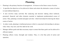 Planning reflects vision, foresight and wisdom. Thus, it is the blue print of action and operation .