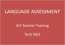 LANGUAGE ASSESSMENT ELT Teacher Training Tarık İNCE CHAPTER 1 TESTING ASSESSING AND TEACHING In an era of communicative language teaching: Tests should measure up to standards of authenticity and meaningfulness. Ts should design tests that serve as motivating learning experiences rather than anxiety-provoking threats. Tests; should be positive experiences should build a person’s confidence and become learning experiences should bring out the best in students shouldn’t be degrading shouldn’t be artificial shouldn’t be anxiety-provoking Language Assessment aims; to create more authentic, intrinsically motivating assessment procedures that are appropriate for their context & designed offer constructive feedback to sts What is a test? A test is measuring a person’s ability, knowledge or performance in a given domain. 1. Method A set of techniques, procedures or items. To qualify as a test, the method must be explicit and structured. Like; Multiple-choice questions with prescribed correct answers A writing prompt with a scoring rubric An oral interview based on a question script and a checklist of expected responses to be filled by the administrator 2 Measure A means for offering the test-taker some kind of result. If an instrument does not specify a form of reporting measurement, then that technique cannot be defined as a test. Scoring may be like the followings Classroom-based short answer essay test may earn the test-taker a letter grade accompanied by the instructor’s marginal comments. Large-scale standardized tests provide a total numerical score, a percentile rank, and perhaps some sub-scores. 3. The test-taker(the individual) = The person who takes the test. Testers need to understand; who the test-takers are? what is their previous experience and background? whether the test is appropriately matched to their abilities? how should test-takers interpret their scores? 4. Performance Test measures performance, but results imply test-taker’ ability or competence. Some language tests measure one’s ability to perform language: To speak, write, read or listen to a subset of language Some others measure a test-taker’s knowledge about language: Defining a vocabulary item, reciting a grammatical rule or identifying a rhetorical feature in written discourse. 5. Measuring a given domain It means measuring the desired criterion and not including other factors. Proficiency tests: Even though the actual performance on the test involves only a sampling of skills, that domain is overall proficiency in a language – general competence in all skills of a language. Classroom-based performance tests: These have more specific criteria. For example: A test of pronunciation might well be a test of only a limited set of phonemic minimal pairs. A vocabulary test may focus on only the set of words covered in a particular lesson. A well-constructed test is an instrument that provides an accurate measure of the test taker’s ability within a particular domain. TESTING, ASSESSMENT & TEACHING TESTING are prepared administrative procedures that occur at identifiable times in a curriculum. When tested, learners know that their performance is being measured and evaluated. When tested, learners muster all their faculties to offer peak performance. Tests are a subset of assessment. They are only one among many procedures and tasks that teachers can ultimately use to assess students. Tests are usually time-constrained (usually spanning a class period or at most several hours) and draw on a limited sample of behaviour. ASSESSMENT Assessment is an ongoing process that encompasses a much wider domain. A good teacher never ceases to assess students, whether those assessments are incidental or intended. Whenever a student responds to a question, offers a comment, or tries out a new word or structure, the teacher subconsciously makes an assessment of the student’s performance. Assessment includes testing. Assessment is more extended and it includes a lot more components. What about TEACHING? For optimal learning to take place, learners must have opportunities to “play” with language without being formally graded. Teaching sets up the practice games of language learning: the opportunities for learners to listen, think, take risks, set goals, and process feedback from the teacher (coach) and then recycle through the skills that they are trying to master. During these practice activities, teachers are indeed observing students’ performance and making various evaluations of each learner. Then, it can be said that testing and assessment are subsets of teaching. ASSESSMENT Informal Assessment They are incidental, unplanned comments and responses. Examples include: “Nice job!” “Well done!” “Good work!” “Did you say can or can’t?” “Broke or break!”, or putting a ☺ on some homework. Classroom tasks are designed to elicit performance without recording results and making fixed judgements about a student’s competence. Examples of unrecorded assessment: marginal comments on papers, responding to a draft of an essay, advice about how to better pronounce a word, a suggestion for a strategy for compensating for a reading difficulty, and showing how to modify a student’s note-taking to better remember the content of a lecture. Formal Assessment They are exercises or procedures specifically designed to tap into a storehouse of skills and knowledge. They are systematic, planned sampling techniques constructed to give Ts and sts an appraisal of student achievement. They are tournament games that occur periodically in the course of teaching. It can be said that all tests are formal assessments, but not all formal assessment is testing. Example 1: A student’s journal or portfolio of materials can be used as a formal assessment of attainment of the certain course objectives, but it is problematic to call those two procedures “test”. Example 2: A systematic set of observations of a stude
