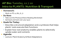 • Symplastic route – Through the cytoplasm & plasmodesmata,