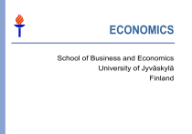 ECONOMICS School of Business and Economics University of Jyväskylä Finland I: An introduction to research in economics in Jyväskylä Index I. Introduction 1. Staff and orientation in research 2. Publishing 3. Doctoral training 4. Research collaboration 5. Societal influence II. Applied research on regional labour markets III. Applied research on financial markets 3 1. Staff and orientation in research: Staff 4 professors Jaakko Pehkonen – empirical labour economics Hannu Tervo – empirical regional economics Markku Lanne – empirical financial economics on leave 2005-06, Ari Hyytinen deputizing for Kari Heimonen (fixed term) – empirical international and financial economics Other staff Esa Mangeloja, Ph.D., lecturer – empirical economics Mika Haapanen, Ph.D., senior assistant – empirical labour economics Juhani Raatikainen, senior assistant – empirical financial economics Tuomo Nenonen, Ph.D., lecturer – empirical regional economics Jani Luoto, university lecturer – empirical macro economics Jutta Moisala, assistant – empirical labour economics on leave, Riikka Penttinen deputizing for – empirical regional economics Jari Ritsilä, leading researcher (Expert services) – empirical regional economics 4 Staff and ….: Orientation in research Applied research Two main fields: Labour and regional economics Regional labour markets Financial economics 5 2. Publishing Number of WP-publications in 2000-2004 is 55 (see the attached list) Refereed articles in 2004-2005 Hynninen, S. (2005): Matching across space: Evidence from Finland, Labour: Review of Labour Economics and Industrial Relations, 19 (4) (Forthcoming). Hynninen, S. (2005): Labour market status of job seekers in regional matching processes, 45th Congress of the European Regional Science Association, Amsterdam. Paper presented in R-sessions (refereed-paper sessions), CD-ROM. Hyytinen A. & Ilmakunnas, P. Entrepreneurial aspirations: Another form of job search, Small Business Economics, forthcoming. Hyytinen A. & Takalo, T. Corporate law and small business finance: Mandatory v. enabling rules, European Business Organization Law Review, forthcoming. Kangasharju, A., Pehkonen, J. & Pekkala, S. (2005): Returns to scale in a matching model, Applied Economics 37: 115-118. Pehkonen, J., Kangasharju, A. & Pekkala, S. (2004): Matches, on-the-job search and temporal aggregation: evidence from the Finnish panel data, the 16th Annual EALE Conference, Lissabon,, congress CD-ROM. Koskinen, H. (2004), Modelling of structural changes in demand for money cointegration relations, Finnish Economic Papers 17: 63-72. Lahtonen, J. (2004): Open vacancies and educational level of job seekers in Finland, The 16th Annual EALE Conference, Lissabon, congress CD-ROM. Lanne, M., Liski, M. (2004): Trends and Breaks in Per-Capita Carbon Dioxide Emissions, 1870 – 2028, Energy Journal 25: 41-65. 6 2. Publishing Number of WP-publications in 2000-2004 is 55 (see the attached list) Refereed articles in 2004-2005 Mukkala, K. (2004) Agglomeration economies in the Finnish manufacturing sector. Applied Economics, 36: 2419-2427. Niittykangas, H., Tervo, H. (2005): Spatial variations in intergenerational transmission of selfemployment, Regional Studies (2005): 319-332 Ollikainen, V. (2005): Gender differences in transitions from unemployment: Micro evidence from Finland, Labour: Review of Labour Economics and Industrial Relations Tervo, H. (2005): Regional population development in Finland – an economic perspective, Abwanderung, Geburtenrückgang und regionale Entwicklung, (ed.) Christiane Dienel (forthcoming). Tervo, H. (2004): Self-employment dynamics in rural and urban labour markets, Regional Science Association International & European Regional Science Association – 44th European Congress, Porto. Paper presented in R-sessions (refereed-paper sessions), CD-ROM. Tervo, H. (2005):Regional policy lessons from Finland, Berlin: Springer-Verlag. Regional disparities in small countries / (eds.) D. Felsenstein, B.A. Portnov , 2005, 267-282. Tervo H. (2005) Regional unemployment, self-employment and family background. Applied Economics (forthcoming) Heimonen, K. (2005) Time-varying fundamentals of the euro-dollar exchange rate, International Economic Journal, (forthcoming). Heimonen, K. (2005) Nonlinear adjustment in PPP – Evidence from threshold cointegration, Empirical Economics, (forthcoming) Tohmo, T. (2004): New Developments in the Use of Location Quotients to Estimate Regional Input-Output Coefficients and Multipliers. Regional Studies, 38, 1: 43-54. 7 3. Doctoral training: Ph.D. students Research training is organized by the Graduate School of the School of Business and Economics and through the national program FDPE (KAVA) The number of active Ph.D. students has strongly increased, being now 18 Funding: 80 % external (Academy of Finland, Yrjö Jahnsson Foundation, KKsäätiö) New competent doctoral students are actively recruited and financing for them is sought for 15 PhDs since 1990. Most of the PhDs work in various research institutes (e.g. Government Research Institute, Labour Research Institute, Bank of Finland, Ministry of Finance) or in Academia (Universities in Jyväskylä, Joensuu, Kuopio and Turku) 8 Doctoral training: Ph.D. students Doctoral degrees in 2000-04 Doctoral degrees in 2005 Sari Pekkala, “Regional Convergence and Migration in Finland 1960-95” Jari Ritsilä, “Studies on the Spatial Concentration of Human Capital” Antti Moisio, “Essays on Finnish Municipal Finance and Intergovernmental Grants” Mika Haapanen, “Studies on the Determinants of Migration and the Spatial Concentration of Labour” Esa Mangeloja, “Nordic Stock Market Integration” Sami Yläoutinen, “Development and Functioning of Fiscal Frameworks in the Central and Eastern European Countries” In progress (pending for oral examination) Virve Ollikainen, financing from the FDPE, “Gender Differences in Unemployment in Finland” Jukka Lahtonen
