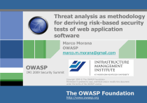 Threat analysis as methodology for deriving risk-based security tests of web application software Marco Morana OWASP marco.m.morana@gmail.com OWASP IMI 2009 Security Summit Copyright 2009 © The OWASP Foundation Permission is granted to copy, distribute and/or modify this document under the terms of the OWASP License. The OWASP Foundation http://www.owasp.org Presentation Agenda Security Testing 101 (In 10 steps) Security Security Security Security Security requirements derivation testing in the SDLC testing workflows, techniques and tools testing guides test reporting and metrics State of The Art Of Security Testing Effective testing, compliance driven testing, tool centric testing Risk Based Security Testing Methodology Deriving test cases from cyber-intelligence, attack tree analysis, attack vectors analysis, ATM/secure architecture analysis Security Risk Testing Strategy Q&A OWASP 2 Security Testing 101 (In 10 Steps) OWASP 3 Why Security Testing? How Security Testing Is Different From Traditional Quality Testing? Test that security controls function as designed with “positive” tests Test that security controls cannot be abused by exercising un-intended/abused functionality with “negative” tests Test to find vulnerabilities in applications with an application scan/pen test Test to find vulnerabilities in the source code with a source code analysis/secure code review Test to find security flaws in design with application threat modeling/secure architecture review OWASP 4 Testing For Software Security: Quality Assurance vs. Software Assurance Quality faults: test as Designed for what we want to do http://www.ddj.com/184405196 Security faults: test as built for anything unexpected OWASP 5 The authentication control should lock a user Step 1: Derive Security Requirements after 3 failed attempts Functional requirements Validate security controls work as designed to function The application need to implement input filtering and (e.g. authentication, authorization, encryption etc) output encoding to mitigate XSS attacks Non functional requirements Validate there are no vulnerabilities and security flaws Security compliance requirements Validate compliance with FFIEC, PCI-DSS, SB in Do not store CC authentication dataGLBA, protect CCH data 1386, and InfoSec, storage maskAppSec CCN onstandards display Threat mitigation requirements Validate mitigation against threats : Spoofing user identity,authenticate Tampering with theand data, Repudiation, Mutually client server to prevent Informationattacks Disclosure, Elevation of repudiation such Denial as ManofInservice, the Middle (MiTM) privileges attacks OWASP 6 Derivation Of Security Requirements To Validate Compliance With Security Standards [PCI-DSS] 6 Develop and Maintain Secure Systems and Applications All vulnerabilities must be corrected. The application must be re-evaluated after the corrections. The application firewall must detect and prevent web based attacks such as cross site scripting and SQL injection. [PCI-DSS] 11 Regularly Test Security Systems and Processes [PCI-DSS] 11.3.2 External application layer penetration test. For web applications, the tests should include, at a minimum, the following vulnerabilities: OWASP T10 OWASP 7 Step 2: Use Security Requirement Engineering Techniques such as Use And Misuse Cases Enter Username and password Includes User User Authentication Threatens Brure Force Authentication Includes Includes Show Generic Error Message Includes Mitigates Harverst (e.g. guess) Valid User Accounts Mitigates Includes Application/Server Validate Password Minimum Length and Complexity Mitigates Hacker/Malicious User Dictionary Attack Includes Mitigates Lock Account After N. Failed Login Attempts OWASP 8 Step 3: Identify Security Testing Tollgates Iterative approach Secure Design Review Security requirements Threat and risk Modeling Requirements and use cases Design Risk-based security tests Test plans Code Review Static analysis (tools) Code Penetration testing Test results Field feedback OWASP 9 Step 4: Integrate Security Testing In Developer’s Workflows Developers Security Tests Test security of functions, methods and classes Security unit/component tests Secure code reviews/security bugs testing Dynamic analysis (e.g. application scans) Main developer’s workflow test check-points Secure code reviews :validate compliance with secure coding standards during coding interactions Defect management: clean security bugs before check-in code in application builds OWASP 10 Step 5: Integrate Security Testing in Tester’s Workflows Testers Security Tests Test security in integrated application builds Validate application security requirements Assess and exploit vulnerabilities Test for secure configuration in operational environment Fuzz testing, reverse engineering Tester Workflow Check Points Validate application security requirements before release to QA or production: security assurance Remediate all HIGH RISK vulnerabilities before release to production according to compliance requirements OWASP 11 Step 6: Adopt Manual and Automated Security Testing Techniques Find Vulnerabilities Using Combining All Four Find Vulnerabilities Using the Running Application Techniques is Most Effective the Source Code Manual Penetration Testing Automated Vulnerability Scanning Manual Code Review Automated Static Code Analysis OWASP 12 Step 7: Decide Which Security Testing Tools To Use Vulnerability Scanning ISS, Foundscan, Nessus, Nikto Penetration Testing (Black Box Testing) Webinspect, Appscan, Hailstorm, Paros, Peach Binary Analysis/Reverse Engineering IDA Pro, @stake SmartRisk Source Code Analysis Fortify, Klockworks, Parasoft, Free Tools (e.g. FindBugs) Threat Modeling MS TAM, TRIKE, PTA Technologies Rootkit BackDoor Analysis ootkits.org and rootkit.nl OWASP 13 Step 8: Document Security Testing Cases Using Testing Guides The OWASP Testing Guide Testing Principles Testing Process Custom Web Applications Black Box Testing Gre