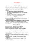 Deviant Behavior Deviance - Defined Behavior, beliefs, or conditions viewed by relatively powerful segments of society as serious violations of important norms (mores). Examples: heroin users; atheism; cancer patient Note that: The behaviors may not always be freely chosen But choice in the arena of deviance tends to be considered very important Deviance is relative: linked to how serious a violation something is in relation to various social norms. Deviance Deviance exists that is not criminal: mental illness, ideological deviance; cross-dressing Criminal activities exist that are not violations of major social norms (not deviant): jaywalking; minor tax evasion; status offenses Other acts are both deviant and criminal: violence & other major law violations Deviance is Relative Deviance concerns judgments made by individuals Deviance varies by time period; culture; group What is important is who controls the definition of deviance! William Chambliss – Saints & Roughnecks A study of the impact of social group labeling “Saints” – middle-class boys who engaged in a variety of deviant and criminal acts “Roughnecks”– lower-class boys who also engaged in a variety of such acts Saints manipulated the system in ways that hid their major delinquency. Roughnecks were often an obvious deviant “target” by the community & policy. Saints & Roughnecks (cont.) Saints perceived as “good boys” who were “sowing their wild oats” before settling down – had bright futures Roughnecks perceived as delinquents & troublemakers – had poor futures. In the eyes of the community, the roughnecks were more deviant, even though their behaviors were very similar to those of the saints. In the final analysis, the boys who were saints grew into more successful adults – while most of the roughnecks continued to do poorly. Chambliss’ study shows: The link between social structure and perception of deviance. The effect of labeling as a self-fulfilling prophecy. Quinney & deviance definition Laws and norms are established to serve the interests of the social elite As a result, some behaviors are penalized more heavily than others Those acts that are penalized more heavily or more frequently are generally those associated with the non-elite (Exceptions: serious, violent crime) The laws that affect the elite are less enforced (environmental protection laws) Why do people deviate? Biological explanations Cesare Lombroso (1835-1909) Criminals are “evolutionary throwbacks” Criminals are born, not made William Sheldon (1898-1977) Linked personality type to body type Body type is related to behavior (focus on criminal types – mesomorphs more likely to be criminal) Psychological explanations Freud – criminals have weak or damaged egos or poor superego control. Driven by the “id” Other psychological factors: cognition; learning; personality traits. Why do people deviate? (Cont.) Social learning theory Deviant behavior that is positively reinforced may be repeated or imitated Deviant behavior is learned in group context Sociological Explanations Strain theory Lower-class focal value theory Differential association theory Control theory Strain Theory Robert Merton (1910-2003) Deviance is the product of a gap between the culturally prescribed goals of a society and the legitimate means for their achievement Deviant behavior is an ordinary response to prevailing structural conditions: blocked opportunities When there is a cultural emphasis on achievement there is pressure to succeed at any cost Strain Theory: How people adapt to strain given a blocked opportunity structure. (see Table 6.1, p. 164) Walter Miller: Focal Concerns Approach (1958) Delinquency linked to “value system” of the lower class Delinquent youth are socialized in an environment where unlawful behavior is viewed favorably Focal concerns linked to delinquency among lower-class youth: trouble; excitement; smartness; fate; autonomy; toughness Differential Association Theory: Edwin Sutherland (1885-1950) Deviance learned through interactions with intimates Deviance arises from an exposure to an excess of definitions favorable to the violation of norms (laws) Degree of deviance has to do with characteristics of the exposure to these “pro-deviant” attitudes & behaviors: Frequency Duration Priority Intensity Social Control Theory (Travis Hirschi) Social Control: Measures taken to ensure conformity to norms (internal & external) Deviance is the product of weak or broken social bonds. Everyone is potentially deviant. Focus is on: Attachment: relationships with others that shape acceptance of social norms Commitment: how much time, energy and effort placed on conventional activities and goals? Involvement: Doing conventional things leaves less time to engage in deviant acts Beliefs: How much respect is present for conventional values? Societal Reaction Theory Labeling theory Focuses on people’s reaction to deviancy Deviance is created by the existence of rules “Rule breakers” are labeled outsiders – not as worthy as “we” are Labeling’s Consequences Primary deviance Secondary deviance Self-fulfilling prophecy Defense Mechanisms Next to each of the statements below indicate with the appropriate letter the defense mechanism that is illustrated. Use the following code. A. Repression Rationalization E. Displacement B. Regression C. Reaction Formation G. Projection F. Sublimation D. 1. Even a top baseball player will sometimes strike out on an easy pitch. When this happens, his next action may be to throw his bat or kick the water cooler with all his might. 2. Soldiers exposed to traumatic experiences in concentration camps during wartime sometimes had amnesia and were unable to recall any part of their ordeal. 3. The mother of an unwanted child may feel guilty about not welcoming her child. As a result, she may try to prove her love by becoming overindulgent and overprotective of the child. 4. Mrs. Brown often accuses o