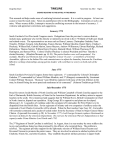 Doug MacIntyre TIMELINE November 24, 2010 Page 1 EVENTS RELATING TO THE BATTLE AT THE BREACH This research aid helps make sense of confusing historical accounts. It is a work in progress. At least one source is listed for each entry. Notes (in parentheses) refer to the Bibliography. Comments in italics are mine. Where sources differ, I attempt to reconcile conflicting accounts in the interest of accuracy. I welcome and appreciate corrections and suggestions. January 1775 South Carolina's First Provincial Congress meets. Delegations from the province's various districts include many gentlemen who will be directly or indirectly involved in the 1776 Battle of Sullivan's Island and related events. The representatives are men such as Henry Laurens, Christopher Gadsden, Peter Timothy, William Tennent, John Rutledge, Francis Marion, William Moultrie, Daniel Horry, Charles C. Pinckney, William Bull, Gabriel Marion, James Mayson, Andrew Williamson, Edward Rutledge, Richard Richardson, Thomas Sumter, William Henry Drayton, Barnard Elliott, William Thomson, H.W. Harrington, and Samuel Wise. Colonel Charles Pinckney is elected President and Peter Timothy is elected Secretary. (Moultrie/Memoirs pp 14-18) The patriot leaders were well-acquainted. For example, Moultrie and Thomson had served together at least 15 years – as members of Colonial Assemblies, officers in the Indian War and commissioners to adjust the boundary between the Carolinas. Effective working relationships among patriot leaders will contribute to victory on both ends of the island. June 1775 South Carolina's Provincial Congress forms three regiments: 1st commanded by Colonel Christopher Gadsden, 2nd commanded by Colonel William Moultrie, and 3rd (Rangers) commanded by Lieutenant Colonel William Thomson. Thomson "soon filled his regiment with many of the best riflemen in the state, he himself being the most practiced marksman in his command." (Johnson/Traditions pp 90-91) July-December 1775 Royal Governors Josiah Martin of North Carolina and William Campbell of South Carolina appeal to the Earl of Dartmouth, British Secretary of State for the American Department, for military action to support loyalists in the south. He is impressed and suggests that Sir William Howe, British Commander-in-Chief in North America, dispatch an expedition. King George III is supportive and plans are developed. (Bearss pp 1-2) A squadron of warships under the command of Commodore Sir Peter Parker is to be dispatched from the British Isles. Seven regiments of infantry and two companies of artillery under the command of Lord Charles Cornwallis will be aboard. When the fleet reaches Cape Fear, NC, Cornwallis will surrender command and a packet of sealed orders from the Secretary of State to Major General Henry Clinton. (Lipscomb/Lowcountry p 20) In November 1775, Lord George Germain replaces Dartmouth as Secretary of State for the American Department. He oversees the American War for Independence in that capacity under Prime Minister Lord North until 1782. The 3rd Regiment of South Carolina is mobilized. In August, there is a near mutiny by some soldiers due to pay and conditions being less than promised by the officers who recruited them. The problem is resolved. The regiment provides support for the diplomatic mission of William Henry Drayton and Reverend Tennent to promote the patriot cause. They are involved in actions to subdue loyalists at Fort Charlotte, Ninety Six, and other locations. They establish the patriot military presence in upper South Doug MacIntyre TIMELINE November 24, 2010 Page 2 EVENTS RELATING TO THE BATTLE AT THE BREACH Carolina and encourage citizens to join the association of those committed to liberty. The officers and men gain valuable combat experience under awful conditions during the very successful Snow Campaign in December. (Johnson Traditions p 91) (Salley/Orangeburg pp 286-338) Lieutenant Colonel William Thomson and Captain Thomas Sumter work together. (Gregorie/Sumter pp 41-43) November 11-12, 1775 A skirmish occurs between British ships Tamar (pronounced "Tamer") and Cherokee and the new patriot schooner Defence in the harbor near today's Old Village of Mt Pleasant. Patriots are sinking vessels at the mouth of Hog Island Channel to obstruct passage and assist in harbor defense. This is considered the first battle of the Revolution in SC. It stiffens public resolve and generates public support for defending the city at Sullivan's Island in addition to closer locations in 1776. (Lipscomb/Lowcountry pp 16-17) December 19-23, 1775 The British have been using the old "pest house" or lazaretto, a colonial quarantine station and the only structure on Sullivan's island, as a watering station. Exiled Royal Governor Campbell is suspected of using the island as a sanctuary for runaway slaves, who raid provisions from nearby plantations. Lieutenants John Withers and James Coachman of Captain John Allston's company of foot rangers make a retaliatory raid. (Allston's company is also known as the Raccoon Company and the Indian company.) They kill three-four fugitive slaves and take 16 prisoners, including slaves and loyalists. They burn the pest house, destroy water casks belonging to British ships, and leave the island unsafe for future landing parties. (Lipscomb/Lowcountry p 19) Major Charles Cotesworth Pinckney and 200 soldiers of the 1st Regiment of SC set up a battery of 18 pounders at Haddrell's Point. The patriots now control access to Sullivan's Island via the Cove between the island and the mainland. (Lipscomb/Lowcountry p 20) January 6-9, 1776 Cut off from provisions, the British men-of-war Tamar and Cherokee and their supporting vessels abandon Charles Town and head to Savannah. A committee of the Council on Safety visits Sullivan's Island and recommends building a fort. The Council adopts the proposal and contracts with Cornelius Dewees for palmetto logs at one shilling per foot. Lieutenant John Fergusson of the Cherokee ha