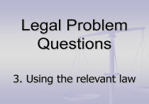 Legal Problem Questions 3. Using the relevant law An answer to a legal problem question without sufficient reference to the law is incomplete. Starting point Apply law to facts Identify issue Identify relevant law Having identified the issues raised by the problem, the next step is to identify the relevant law you will use to solve the problem. How? Typically, identifying the issues will suggest the relevant law to be used to solve those issues. Consider the following example we used in Workshop Two, where we identified the issues raised in a problem question. Alice runs a small stationery business specialising in wedding invitations. Her husband John owns a large printing business, and because he buys such a large volume of paper, he is able to purchase his paper much more cheaply than Alice. On Thursday night, after cooking John’s favourite meal, Alice asked John if he would supply her business with paper at his cost price. John said, “Of course honey. Whatever would make you happy.” Alice then decides to invest in specialist inks. On Friday she rings her supplier at Mary’s Inks Pty Ltd and talks to Mary. She discusses her plans to expand her wedding invitation business into programmes and place cards, which means she will need to order additional ink colours, and ink which is suitable for printing photos and graphics. Mary tells Alice that all the ink they supply is of the highest quality. Alice orders 2 dozen black ink cartridges at the list price of $30.00 each, to be delivered next Friday. She also inquires about gold and silver inks, and is told that gold cartridges are available for $80.00 each, and silver for $75.00. Alice is unhappy with these prices, and considers that as a long standing customer, she should receive a better price. She tells Mary that she is prepared to pay $60.00 for the gold cartridges and $50.00 for the silver. Mary is unsure whether or not these prices are acceptable. Alice tells her to think about, and that if she doesn’t hear to the contrary, she will take 5 gold and 5 silver cartridges, to be delivered with the black ink cartridges on Friday. On Friday morning, Alice receives a delivery from Mary – of 24 black ink cartridges but no colour cartridges. Alice rings Mary, thanks her for the delivery of the black cartridges, but notes there are no gold or silver cartridges. Mary advises that she has decided not to supply them at Alice’s price – Alice protests that they had an agreement about the coloured inks. Alice then rings John and asks him to send over some paper she needs – at cost price as agreed. John replies that he will certainly provide her with paper, but that he needs to do so at market price. She protests and reminds him of last Thursday evening. He replies “Ah yes. That was dinner, this is business.” After Alice gets off the ‘phone her assistant Peter shows her an order for wedding programmes on which he has been working, using the black ink supplied by Mary that day. The text was fine, but the photo of the bride and groom has printed blotchy and streaky. He tells Alice there is a problem with the ink – it will not print photos properly. Advise Alice. Issues raised Her husband John Alice and John are married. An important issue to discuss is intention to create legal relations. Having identified this issue, you will know that you have to consider the law of intention to create legal relations, any relevant rebuttable presumptions, and cases such as Merritt v Merritt [1970] 2 All ER 760 How will you know the relevant law? We have previously said the first step in legal problem solving is to have an understanding of the relevant legal area. You need enough legal knowledge to identify a starting point – an issue, and a relevant case or statute. You can begin any research from this point – but you can’t begin to answer a question by researching the facts. More issues ink which is suitable for printing photos and graphics. This discussion – about the purpose of the ink purchase - reminds us that legislation may imply a term into a contract that the goods be fit for the purpose for which they have been bought. Having identified this issue you will know that you must consider the Trade Practices Act 1974 (Cth) and/or the Sale of Goods Act 1923 (NSW) Consider: How much of the legislation will you need to consider? Is it enough to mention the Act? Or do you need to consider specific section(s) of the Act? If you are using legislation does this mean that case law will not be relevant? Would you ever use case law and legislation? More issues if she doesn’t hear to the contrary, she will take 5 gold and 5 silver cartridges, to be delivered with the black ink cartridges on Friday. Alice is suggesting acceptance by silence. This raises the issue of how an offer may be accepted. Is it enough to discuss the principles generally (eg communication) or do you need to discuss specifics such as the rule about silence discussed in Felthouse v Bindley (1862) 11 Cb (NS) 869? BUT, the issues don’t suggest any relevant law to me…… If you are in the unfortunate position where you can spot the issues, but cannot identify the necessary law, then check your text book or lecture notes for ideas and clues as to the relevant law. It is wise to review your text and notes anyway to make sure you have identified all the relevant law. How much law do I need? You have picked the issues raised and identified the law you will use to solve the problem. How much ‘law’ do you need? Remember that legal problem questions are different to legal essays or journal articles. Legal problems A legal problem is not asking for a theoretical discussion of the law – it requires the practical application of legal principles to a set of given facts. So…. A problem question does not require extensive hypothetical legal discussion. Relevant law A clear statement of the relevant law is generally sufficient – supported by relevant legal authority ‘Re