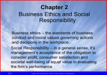 Social Responsibility – in a general sense, it’s management’s acceptance of the obligation to consider profit, consumer satisfaction and societal well-being of equal value in evaluating the firm’s performance.