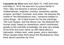 Vinci, Italy, but became a renown scientist,